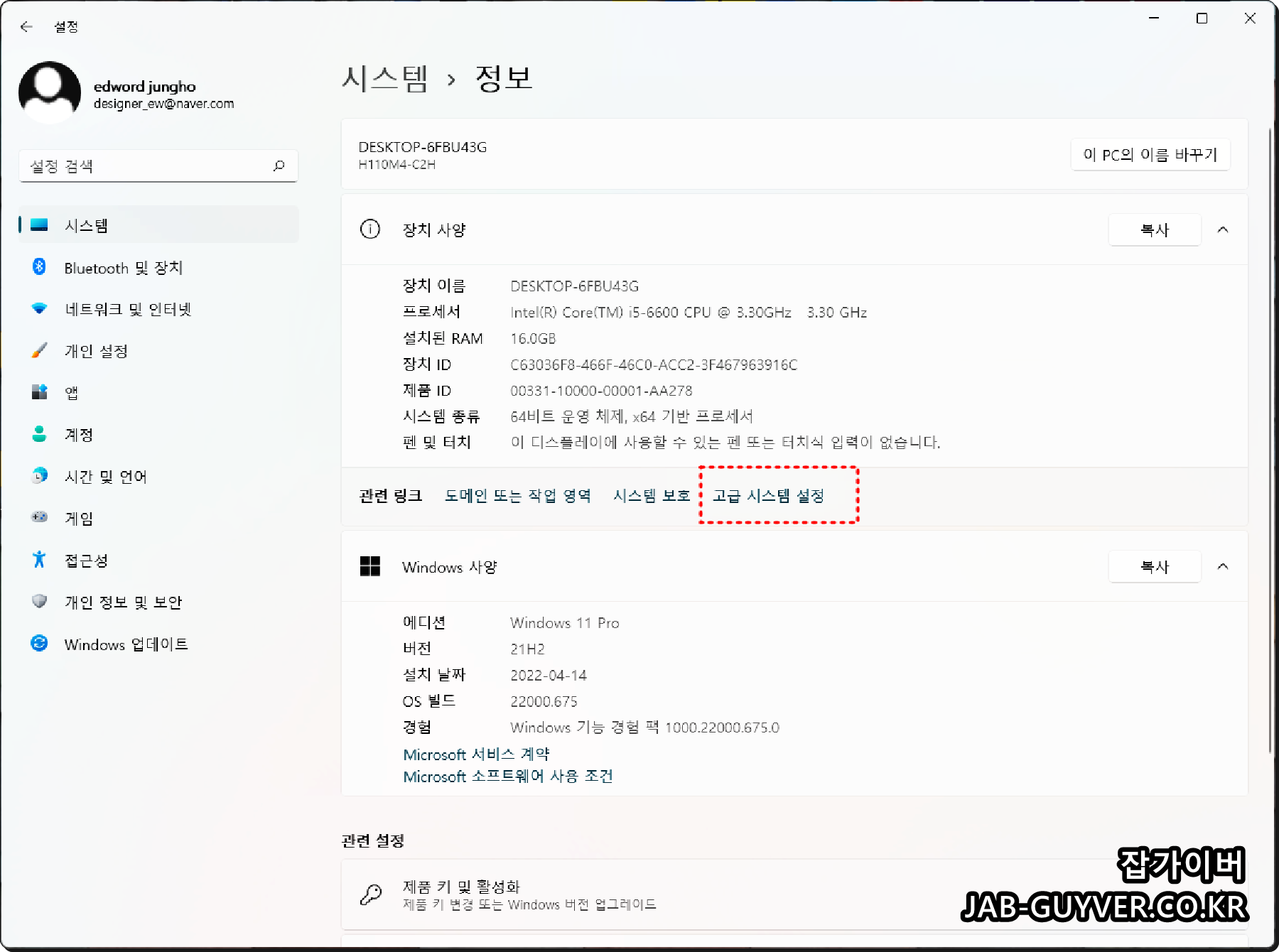 윈도우10 사용자라면 제어판 -> 시스템 -> 고급 -> 성능 설정으로 들어갑니다.