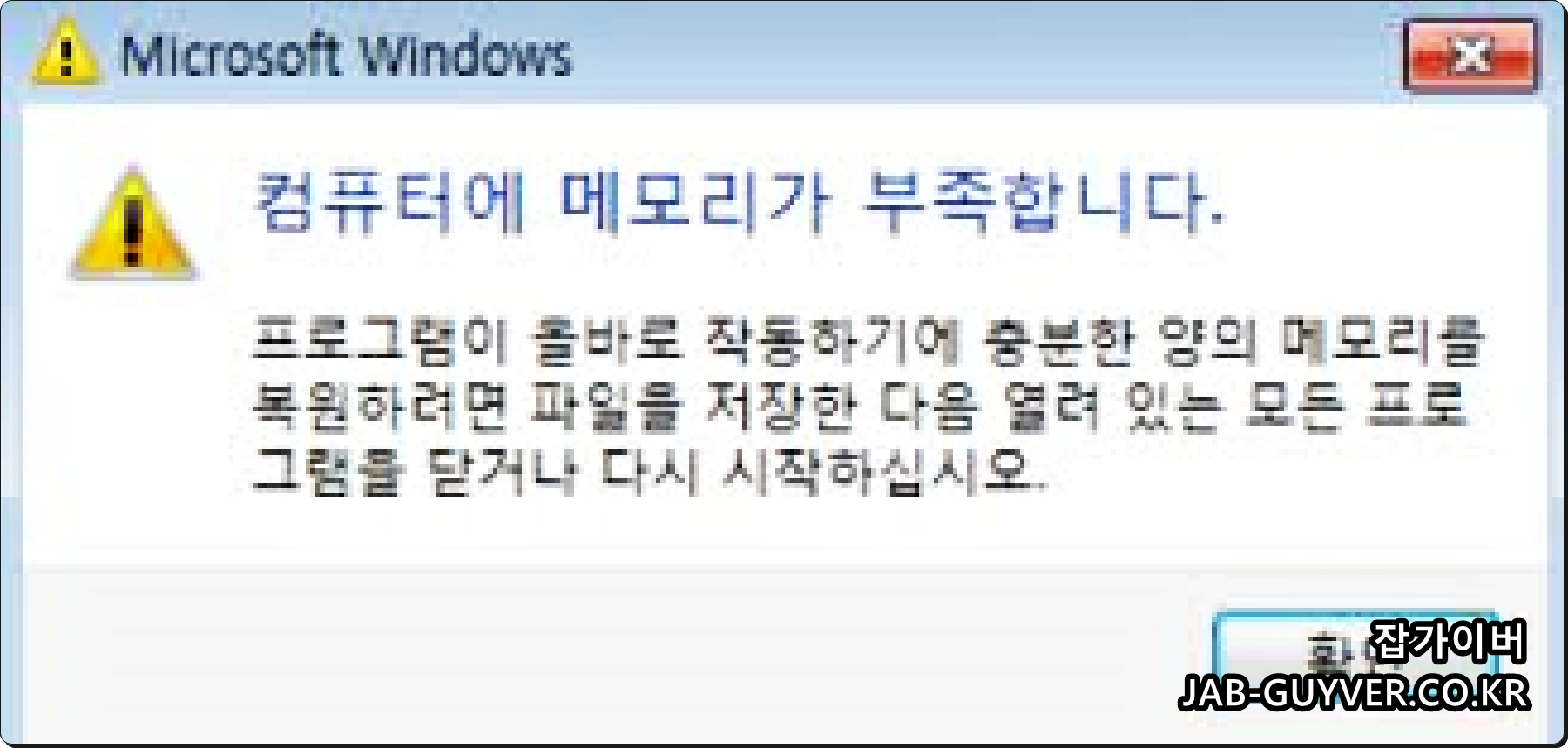 그럼 컴퓨터 및 프린터등 사용 시 윈도우에서 메모리 부족 및 리소스 부족증상이 해결됩니다.