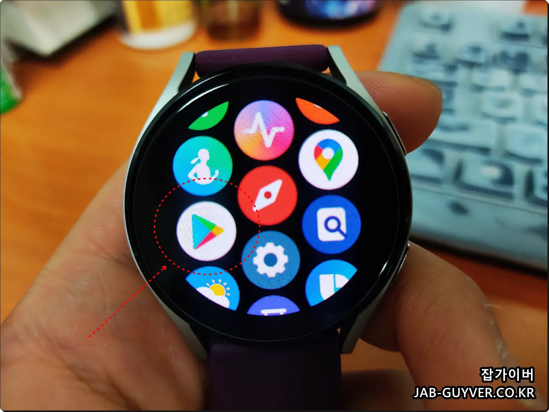 갤럭시워치에서 카카오톡 설치방법은 워치를 아래에서 위로 스와이핑 하면 앱 목록이 실행됩니다.
