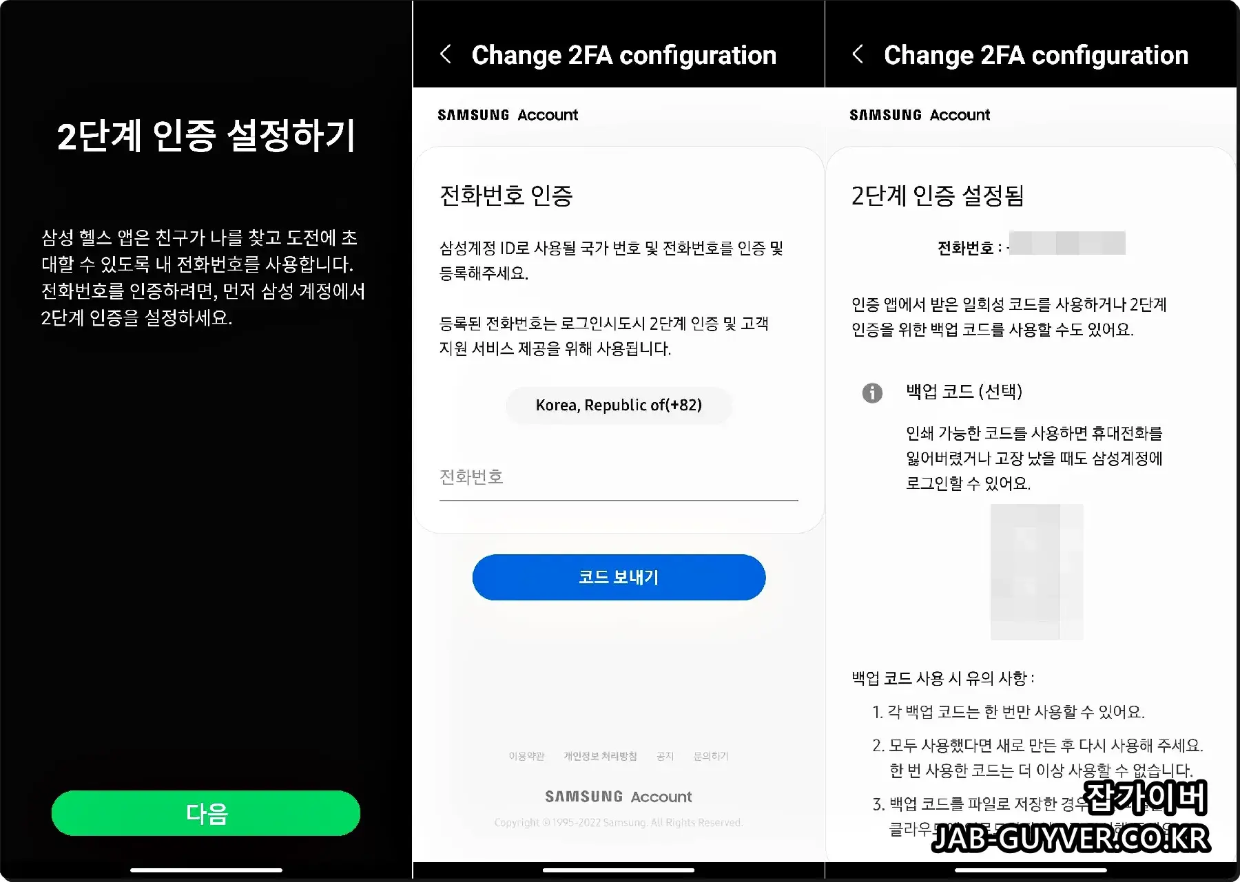 삼성헬스를 사용 시 워치 분실등을 이유로 2단계 인증을 설정하고 백업코드를 저장해두는것이 좋습니다.