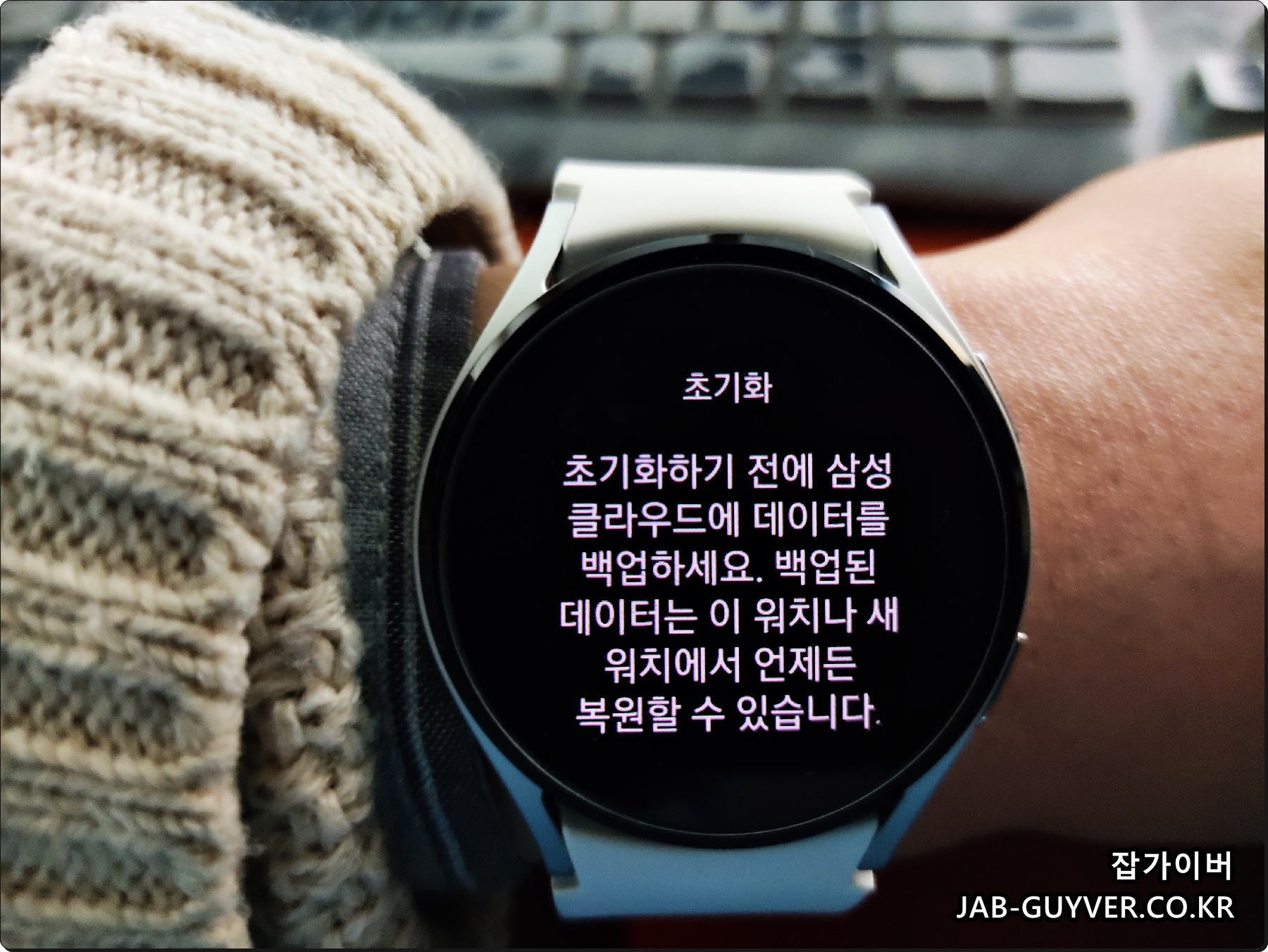 초기화 시 갤럭시워치 내 저장된 데이터는 모두 삭제됩니다.