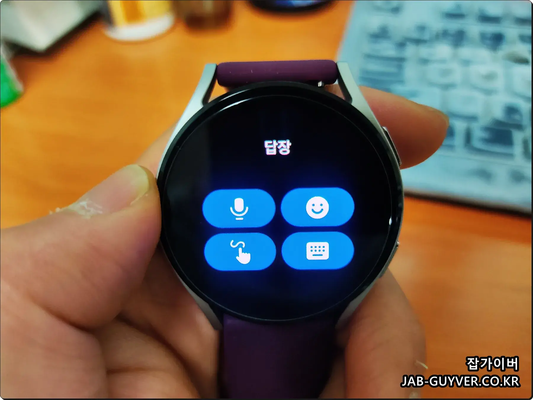 이후 카카오톡 채팅방 알림이 워치로도 울리고 간단한 답장은 키패드로 할 수 있으며 그외에도 음성이나 이모티콘으로 답장이 가능합니다.
