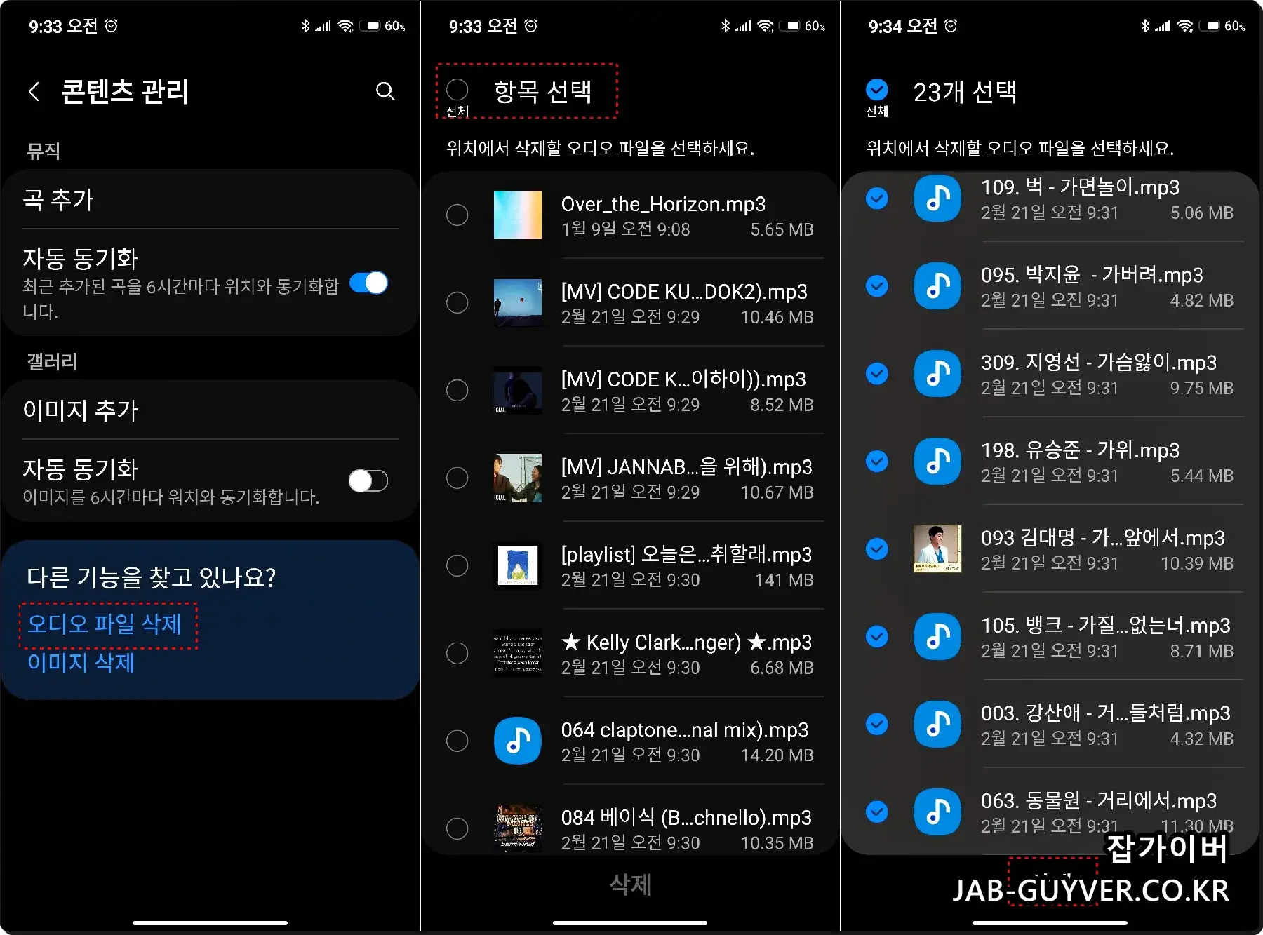 음악전송 및 동기화 삭제방법