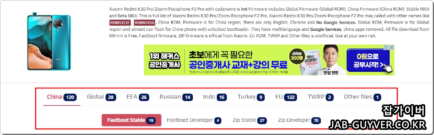 우선 샤오미 핸드폰에 부트로더 해제한 뒤 아래 사이트를 통해 샤오미 K30에 대한 글로벌롬 및 EU롬 등을 다운로드 받을 수 있으며 우선 TWRP 가장 최신버전을 핸드폰으로 다운로드 받습니다.