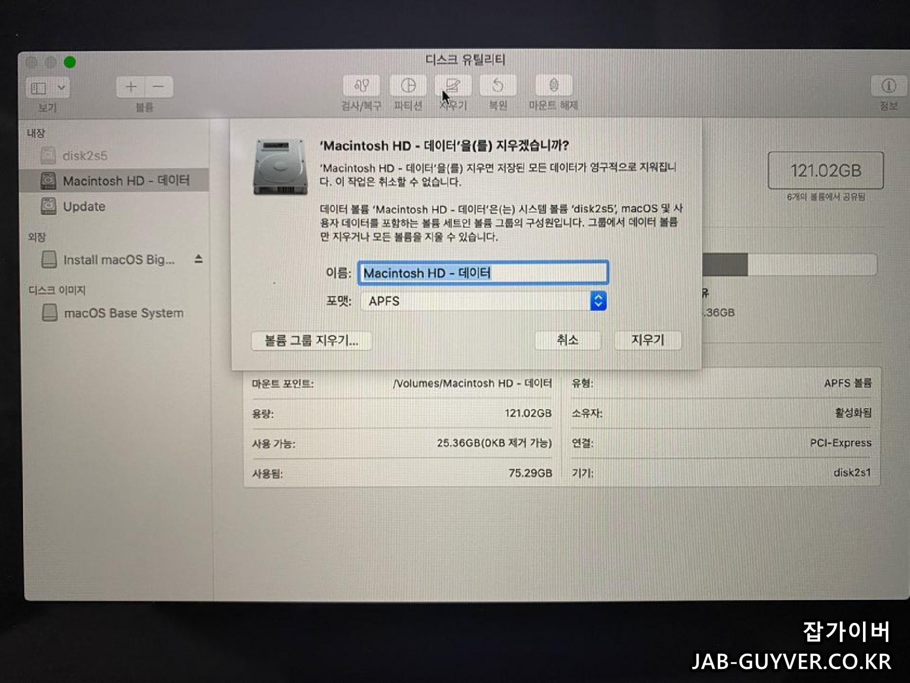 디스크유틸리티 포맷 후 맥북 클린설치