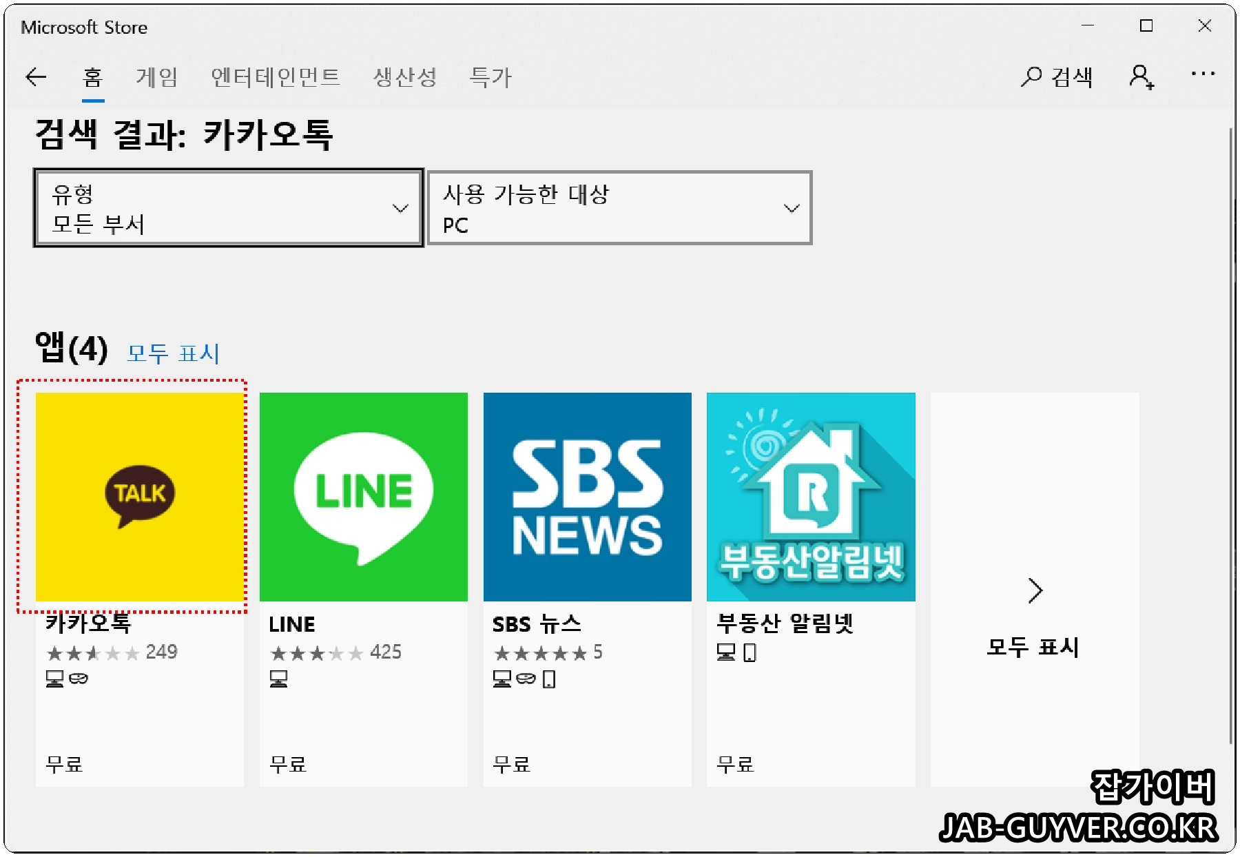 갤럭시탭 구글 플레이스토어에서 카카오톡 앱을 설치합니다.