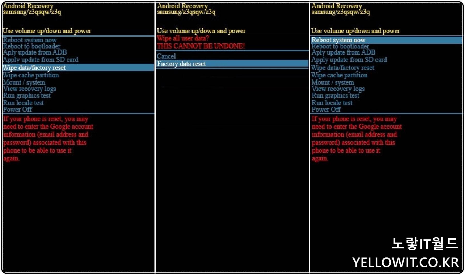 갤럭시 리커버리 메뉴에서 공장초기화 항목 이해하기