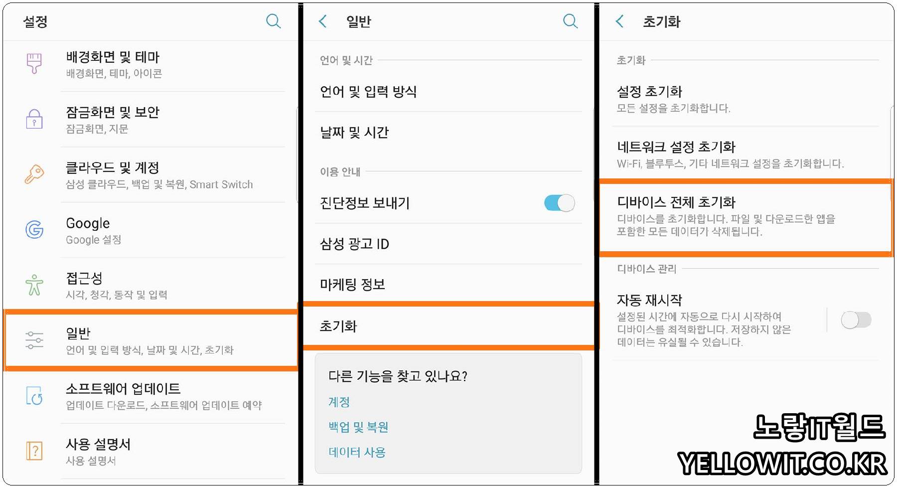 갤럭시 설정 메뉴에서 디바이스 전체초기화로 깨끗하게 정리하기
