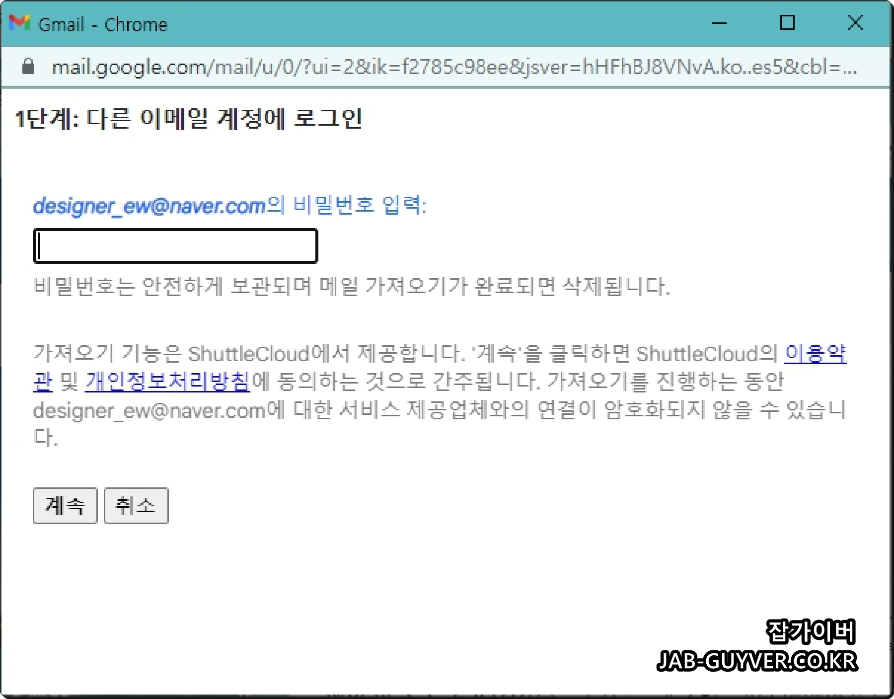 구글 지메일 메일 가져오기 취소