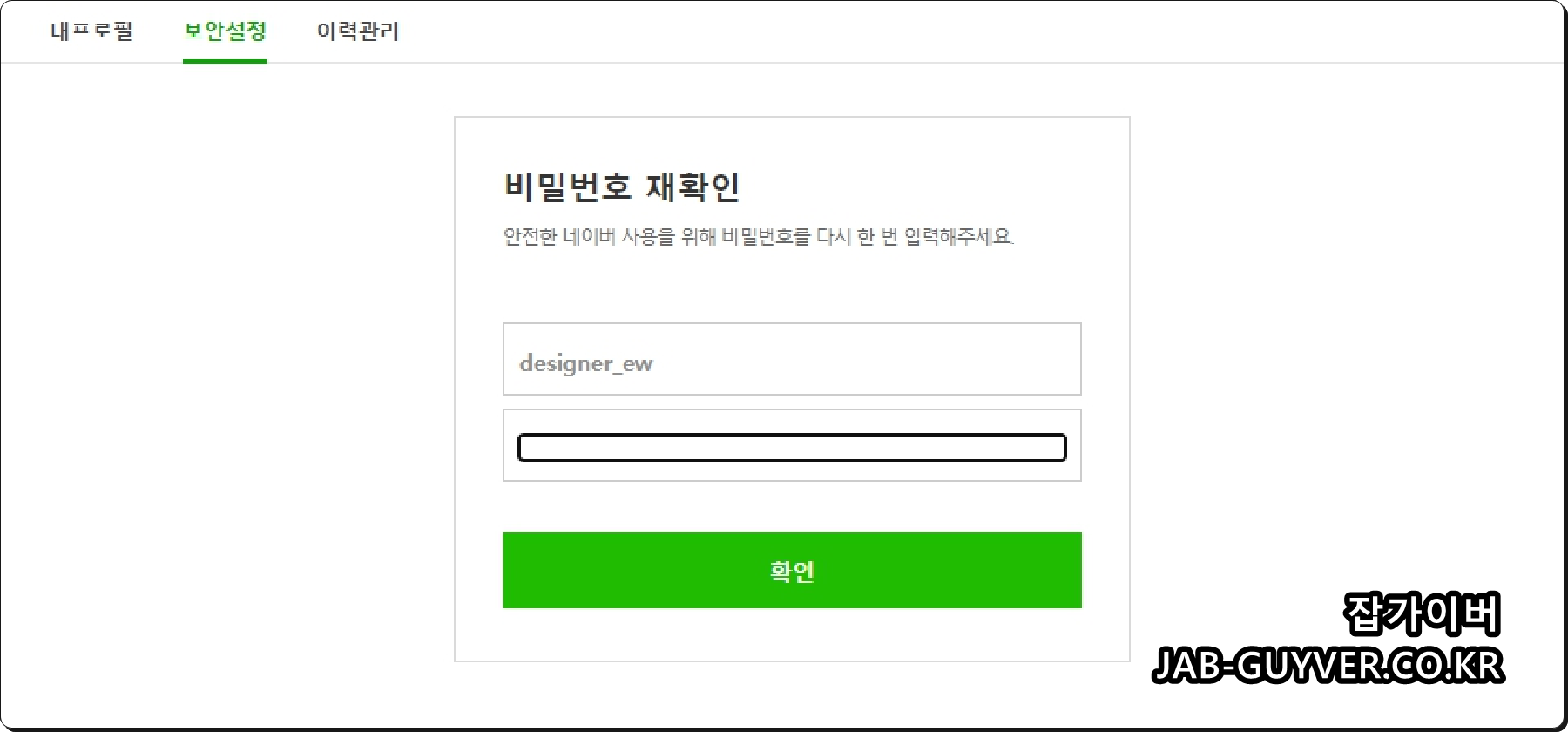 보안설정을 위해 네이버 계정 비밀번호를 재확인합니다.