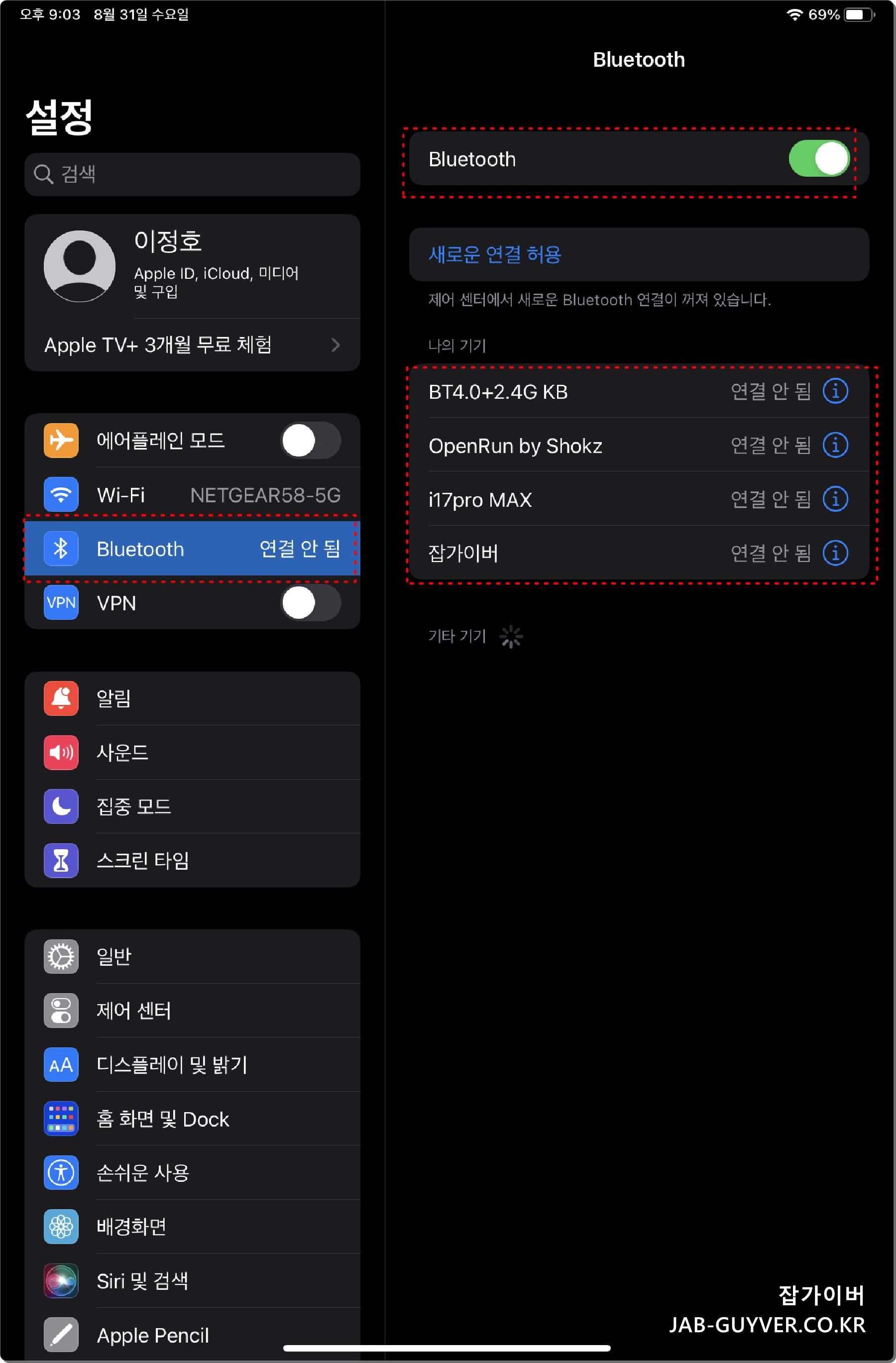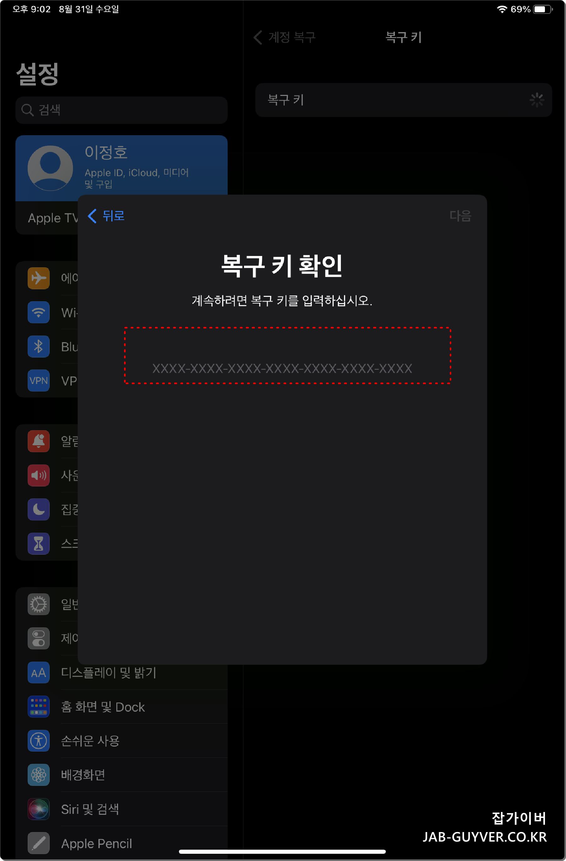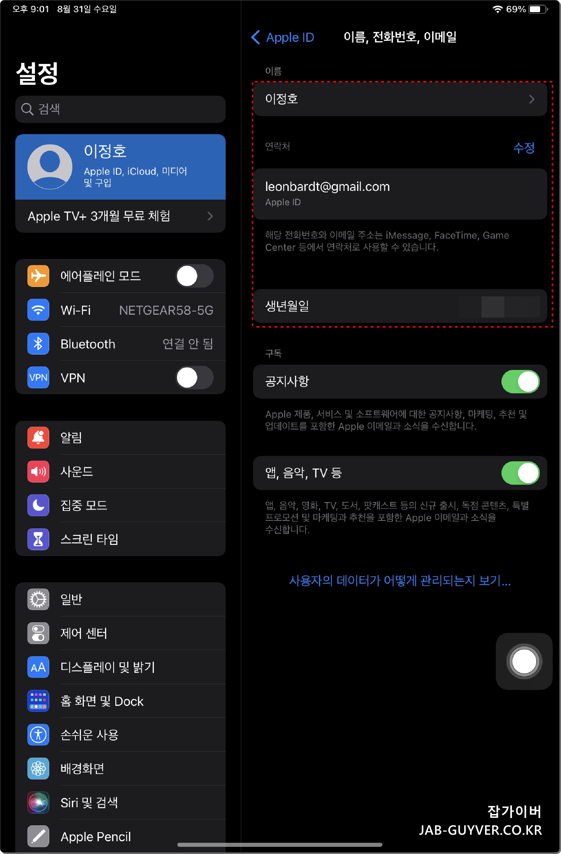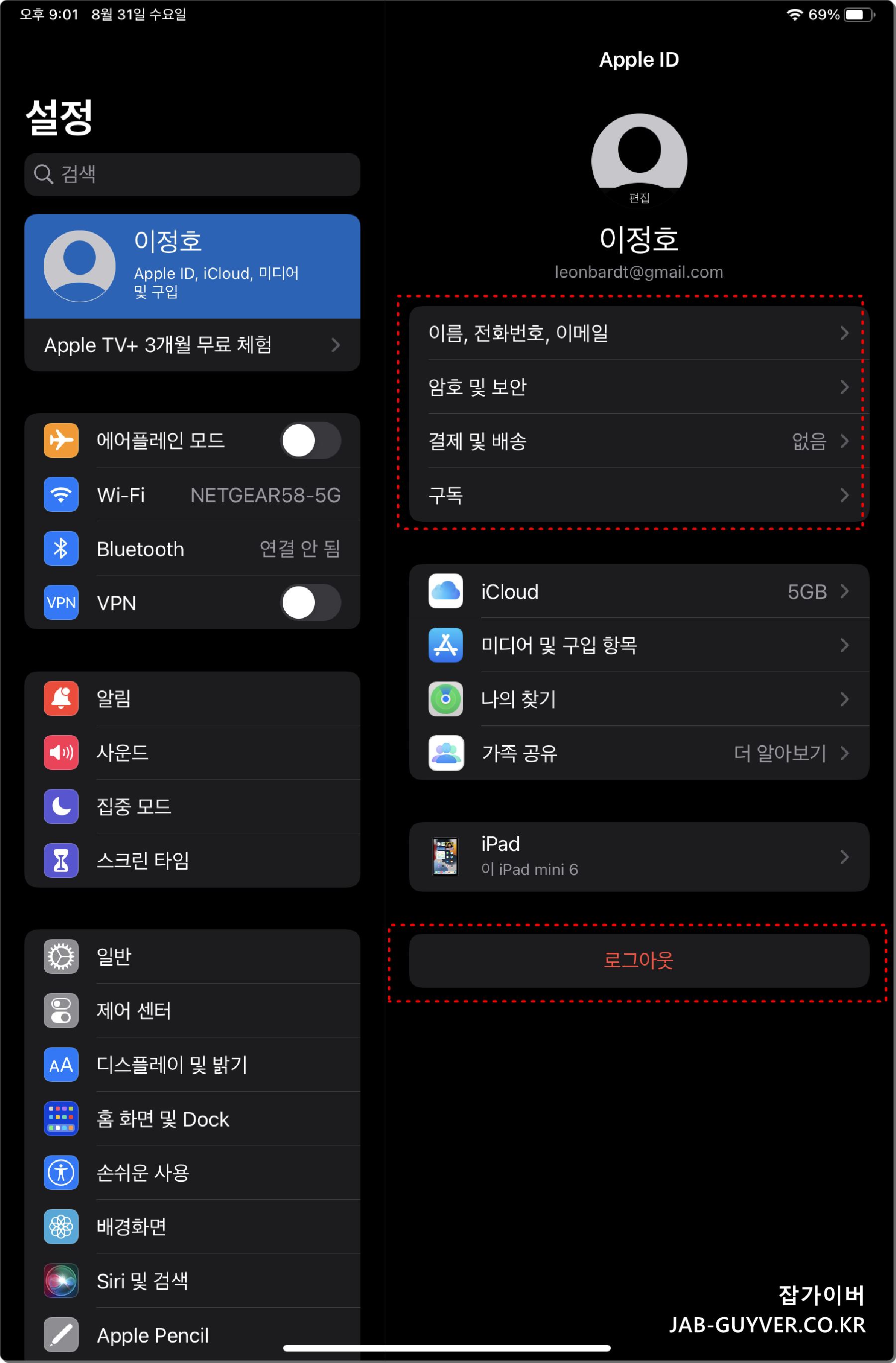 애플 아이패드 Apple ID 계정정보 확인 및 변경 보안설정