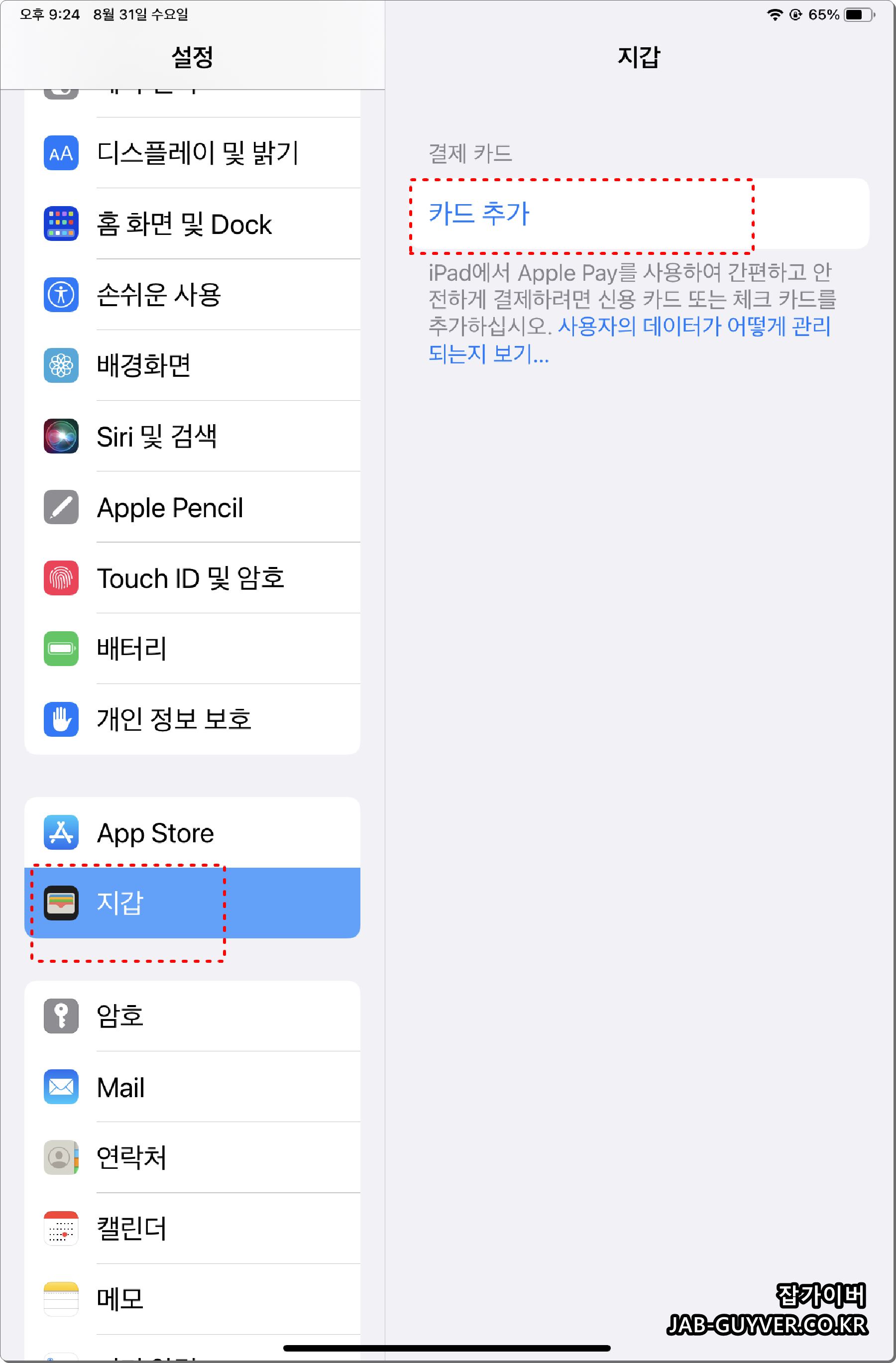 지갑에서는 아이폰 및 아이패드를 통하 애플페이 결제가 가능하지만 국내 기준에서는 사용이 제한적입니다.