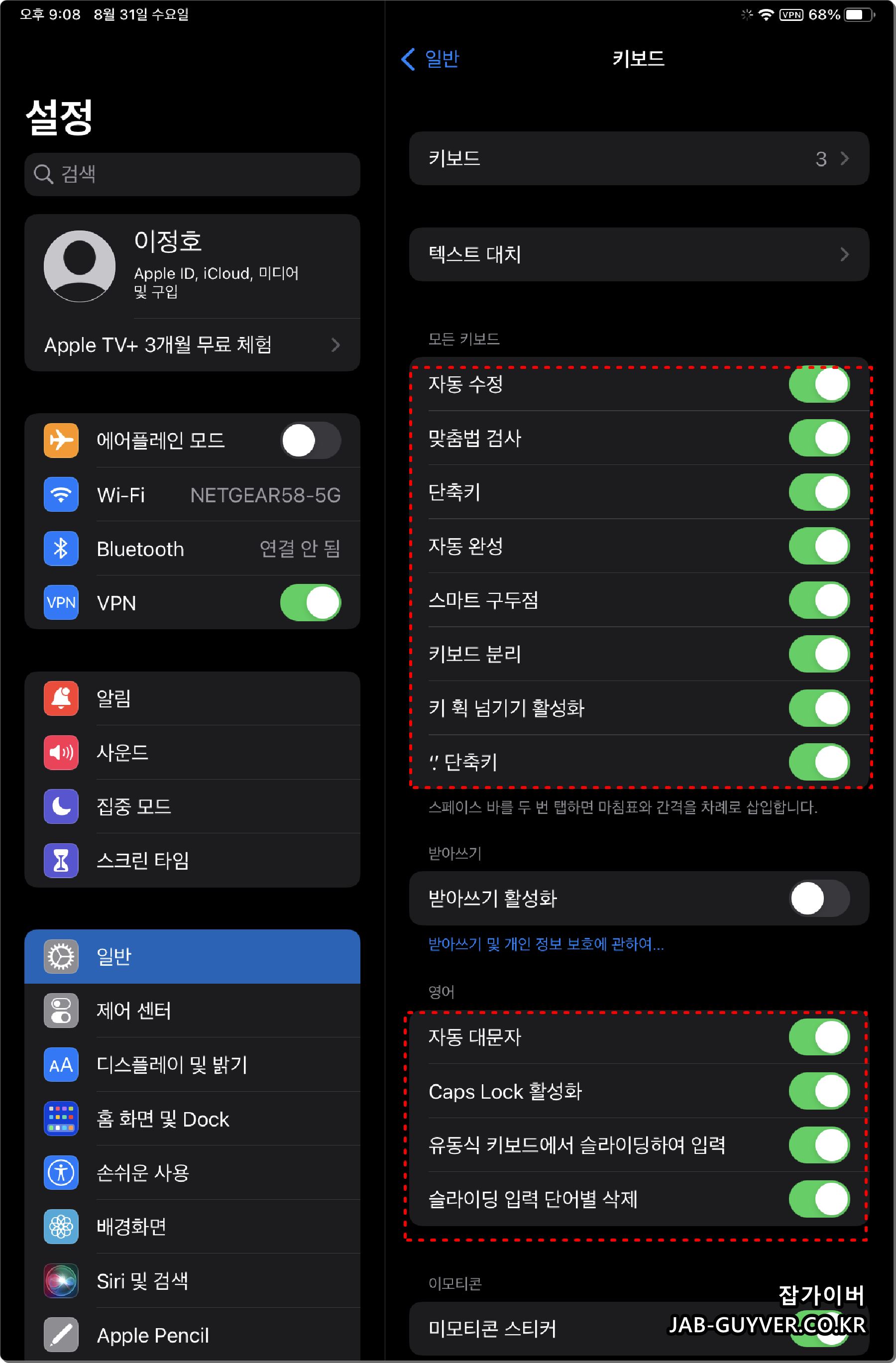 아이패드 키보드 및 단축키 설정