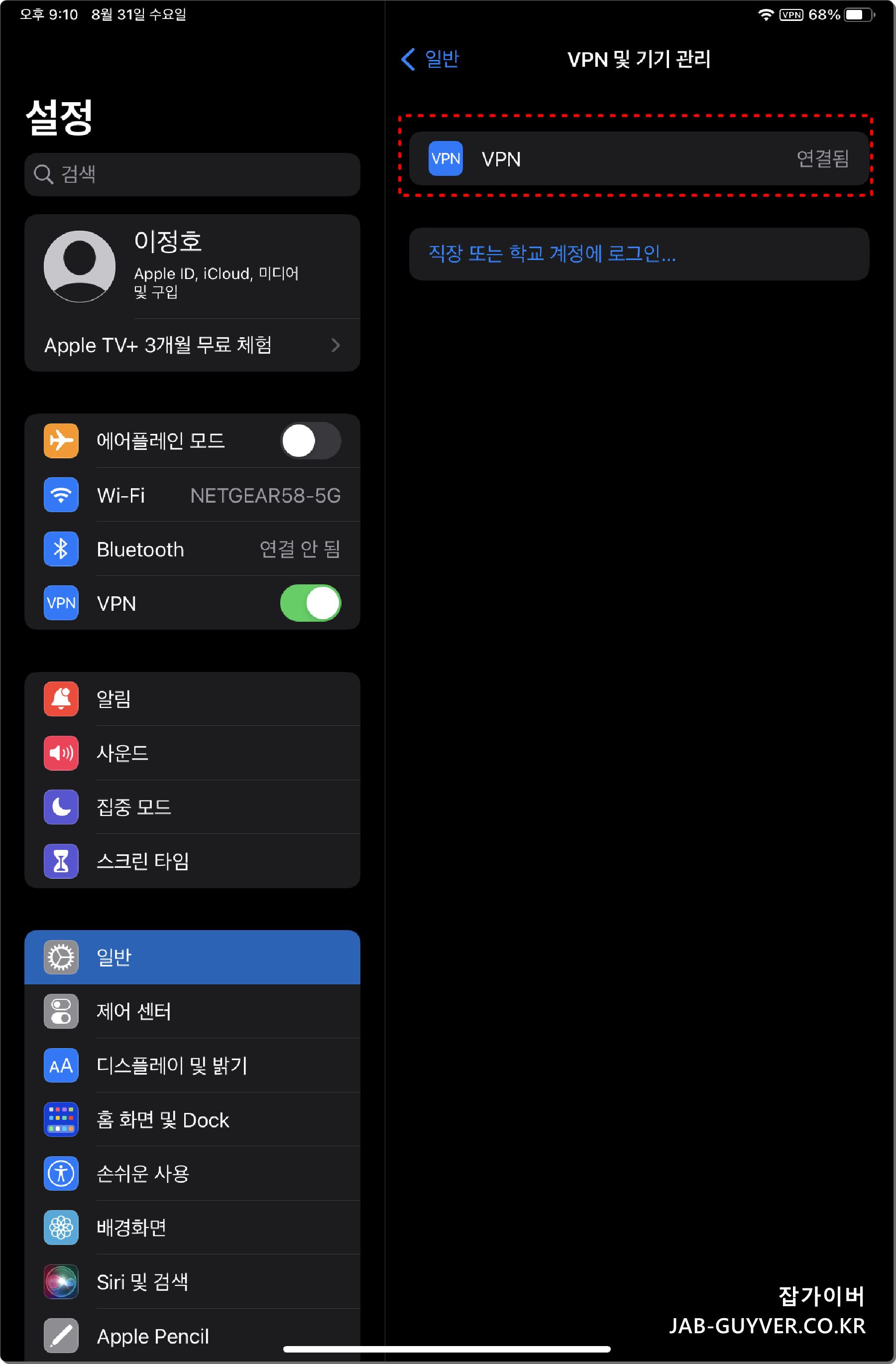 마지막으로 VPN 및 기기관리르 통해 VPN 연결이 가능합니다.
