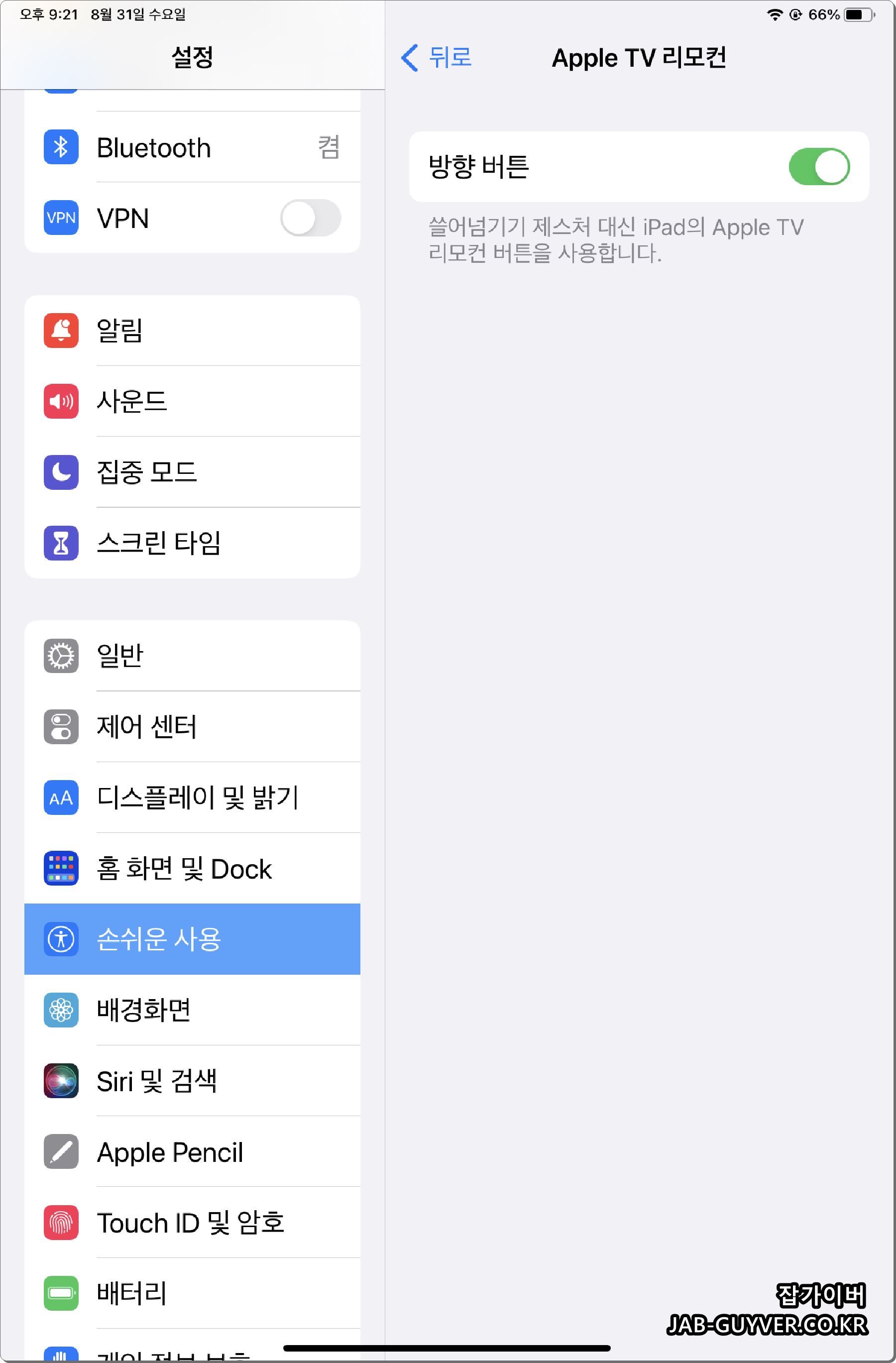 그 외에도 애플TV리모컨 및 시리야 기능을 끄거나 킬 수 있습니다.