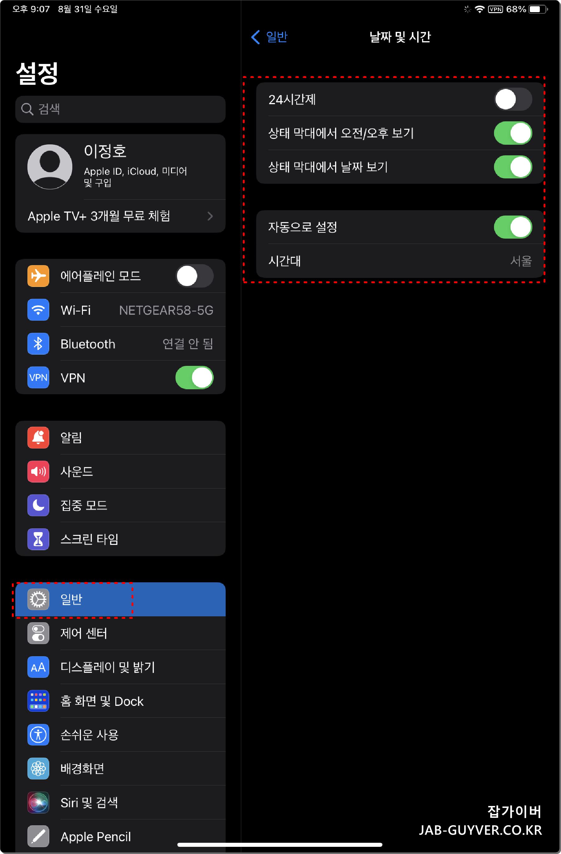 필요에 따라 시간표기가 24시간 / 12시간 오전 / 오후 등으로 보기편하게만 설정하는것을 추천합니다.