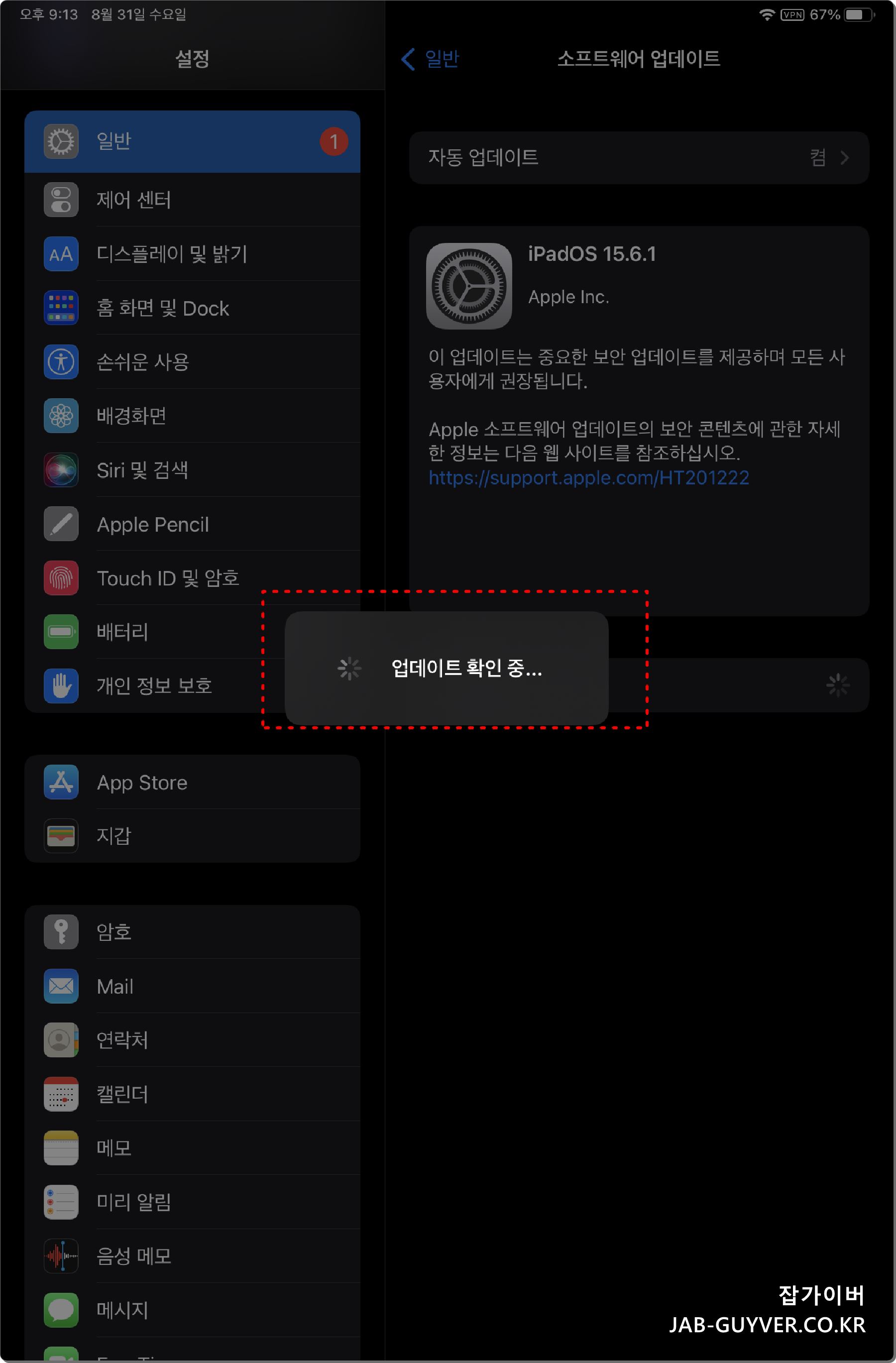 비밀번호를 한번 더 입력해주면 최신 iPADOS 15.6.1 버전으로 소프트웨어 업데이트가 진행됩니다.