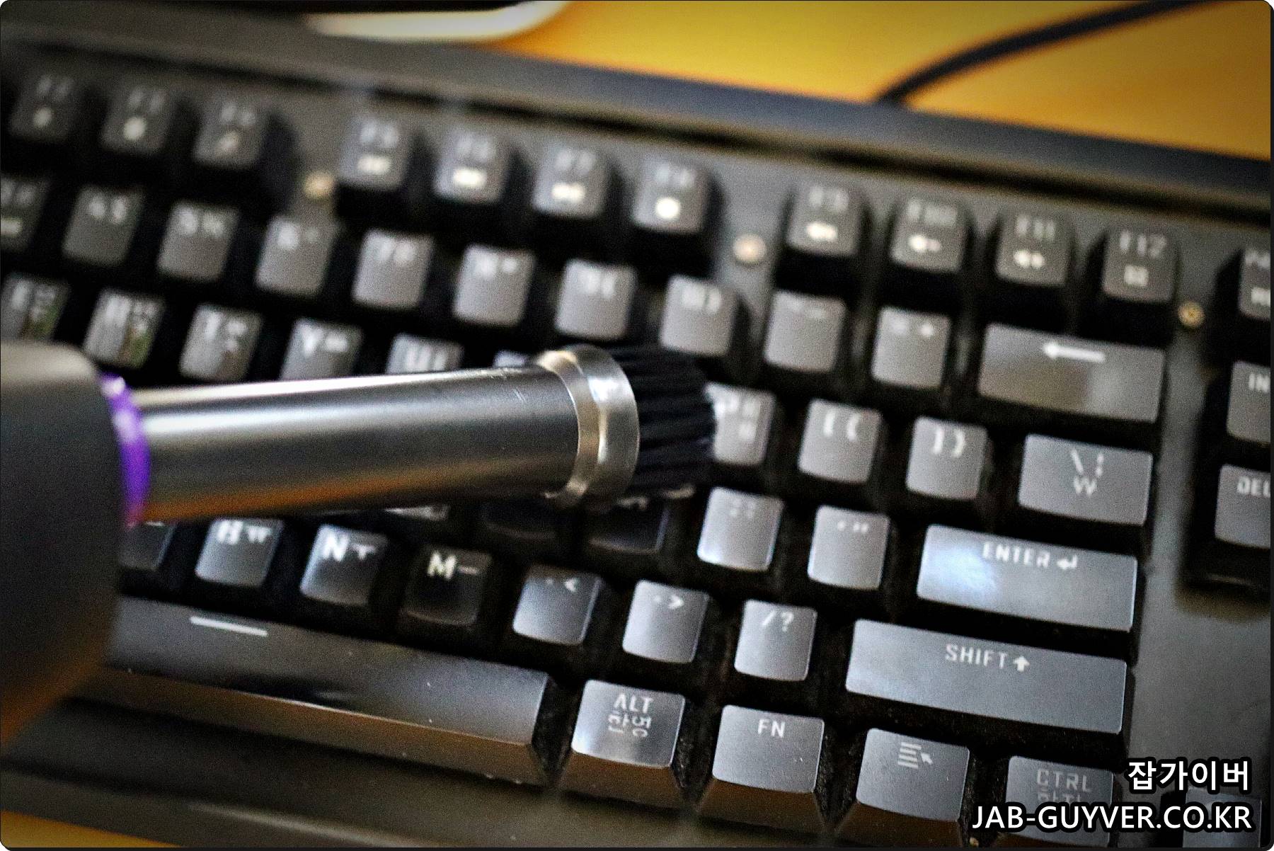 키보드 먼지제거는 그냥 사용하면 안되고 이렇게 솔을 이용해서 솔로 문지르면서 불면 효과적입니다.
