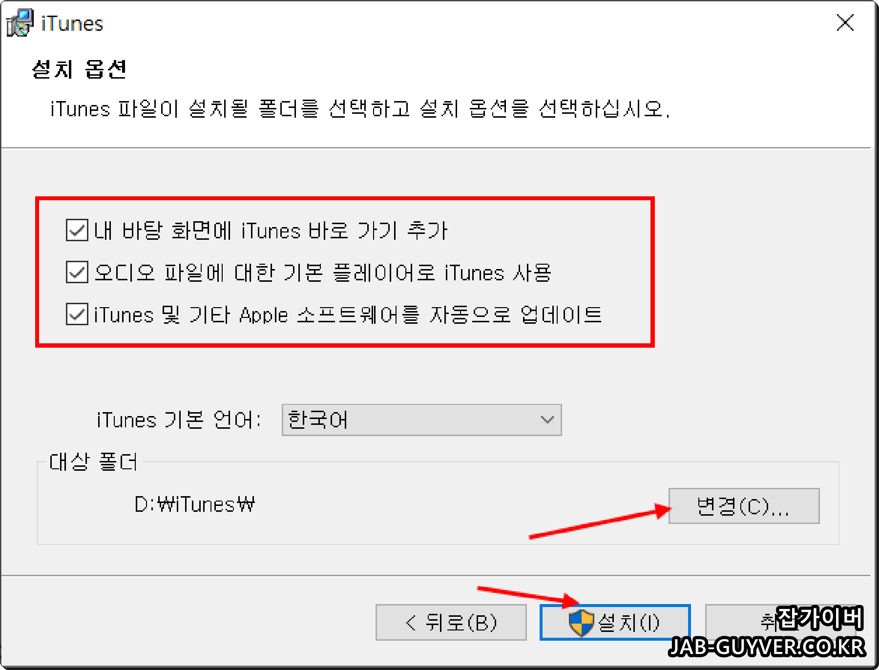 기타 아이튠즈 및 애플 소프트웨어 자동 업데이트를 체크 후 설치를 진행합니다.