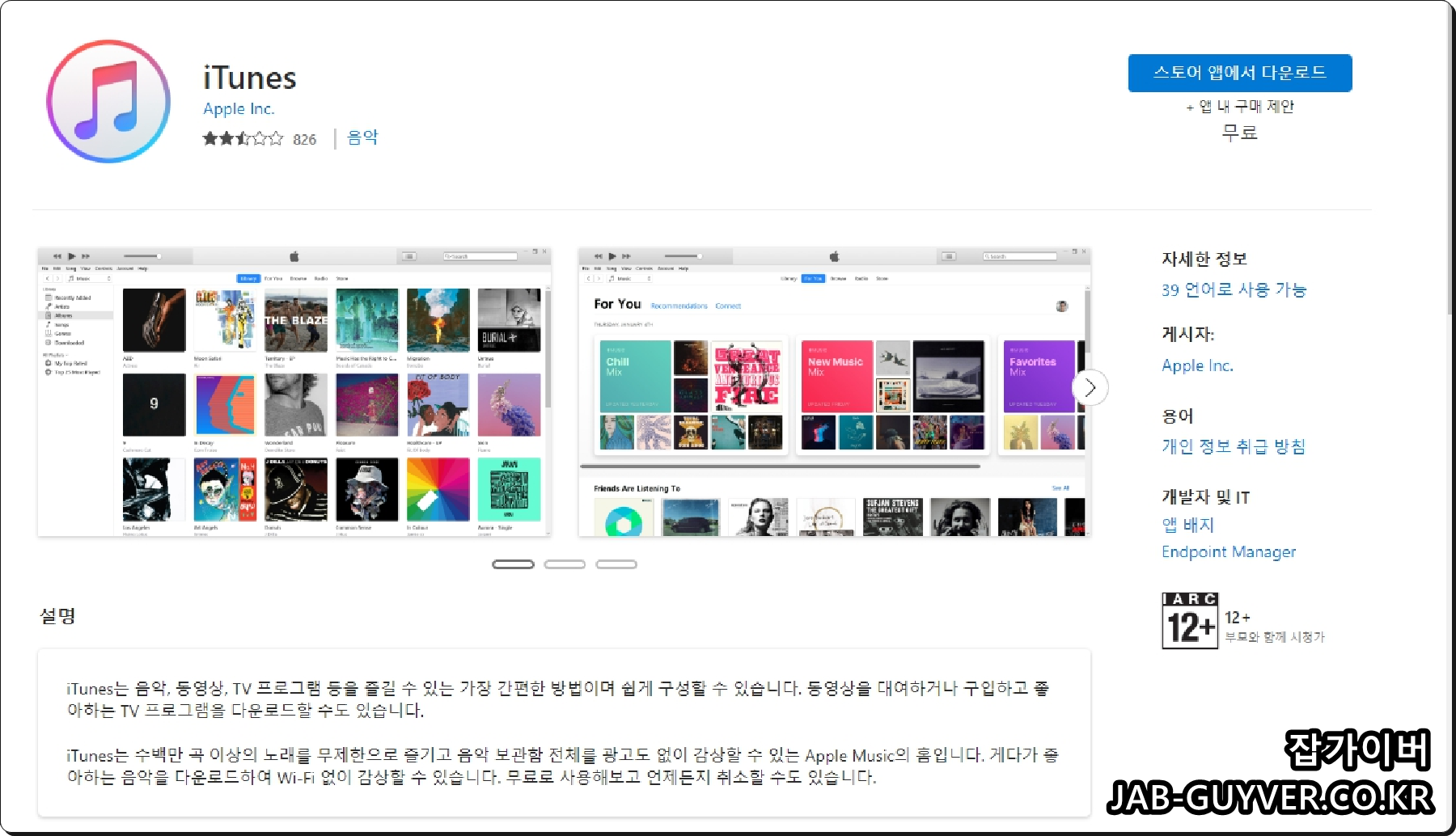 - Windows라면 Apple 공식 사이트에서 최신 버전을 설치하세요.