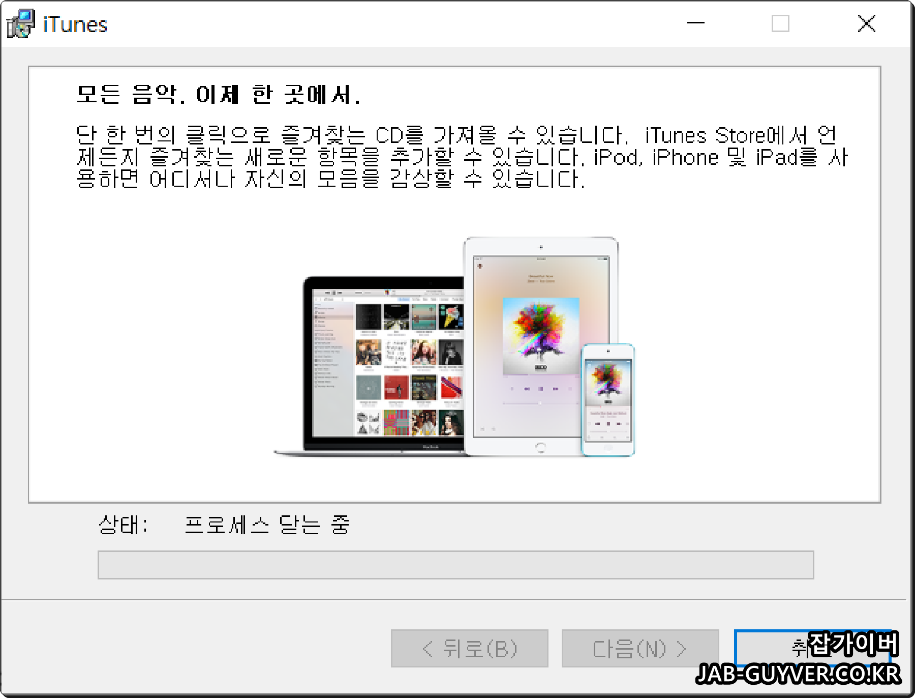 아이튠즈 설치가 완료되면 자동으로 아이튠즈를 실행합니다.