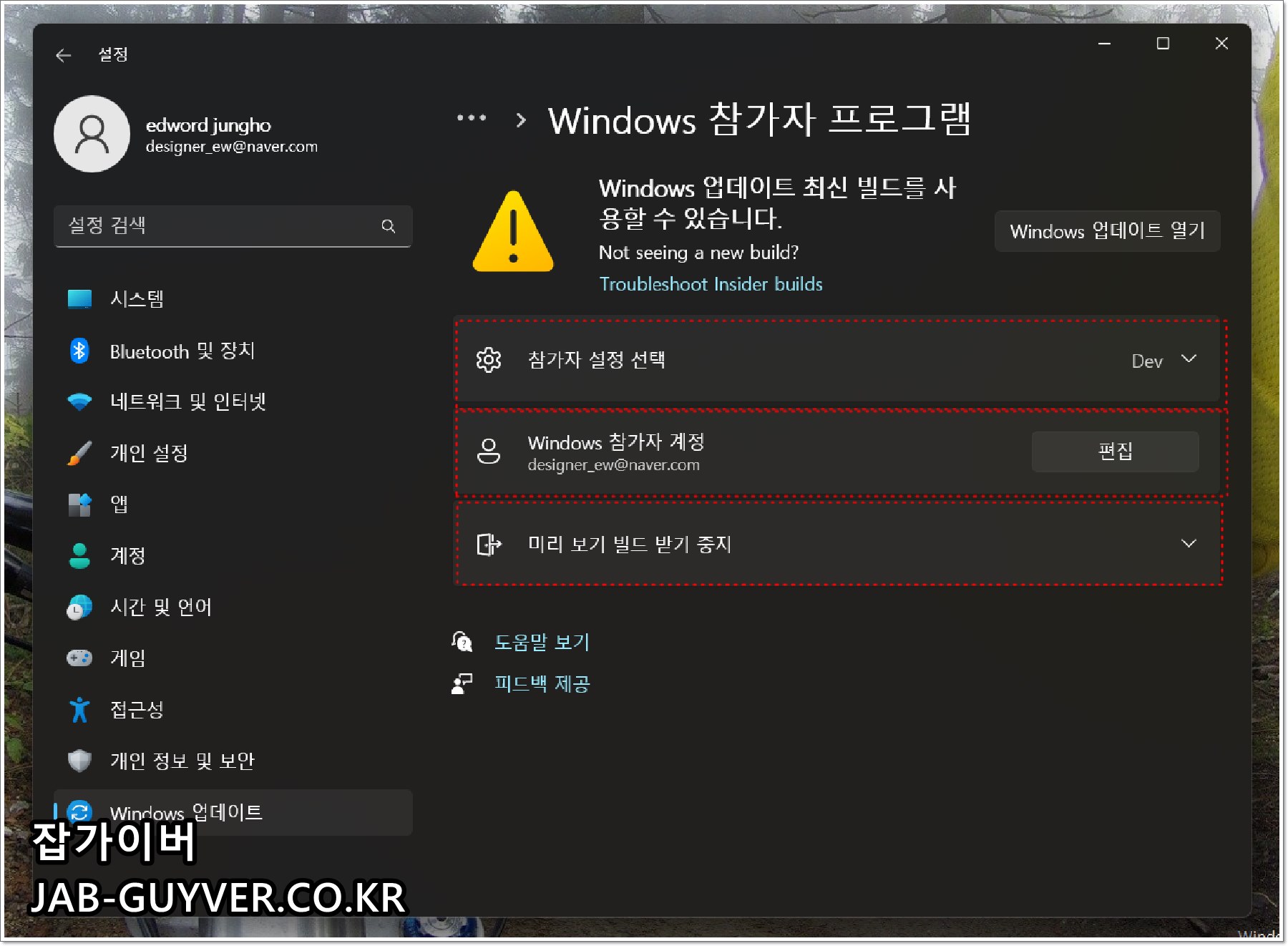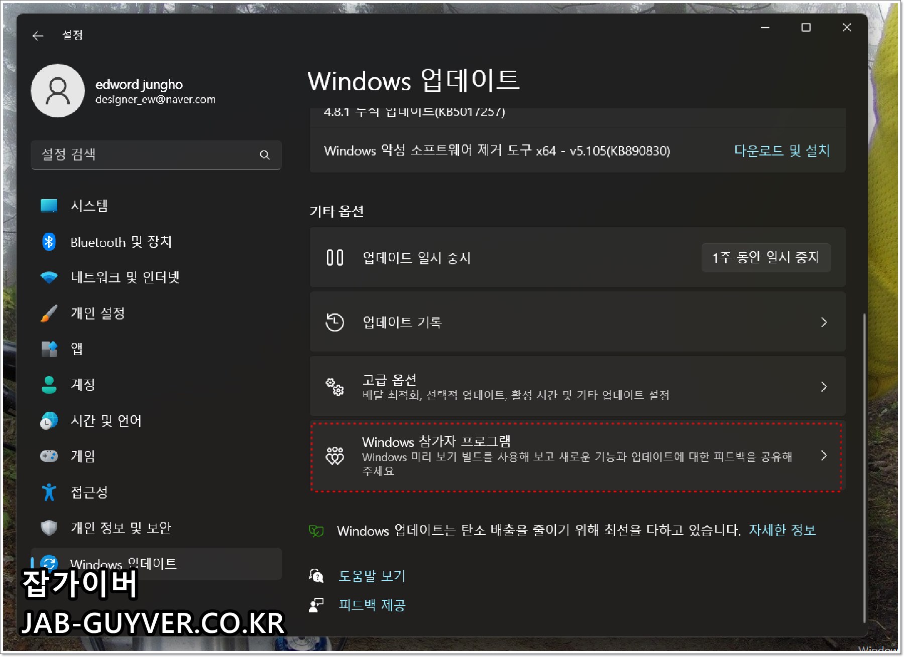 Winodws 참가자 프로그램 중단 해제방법 - 윈도우11