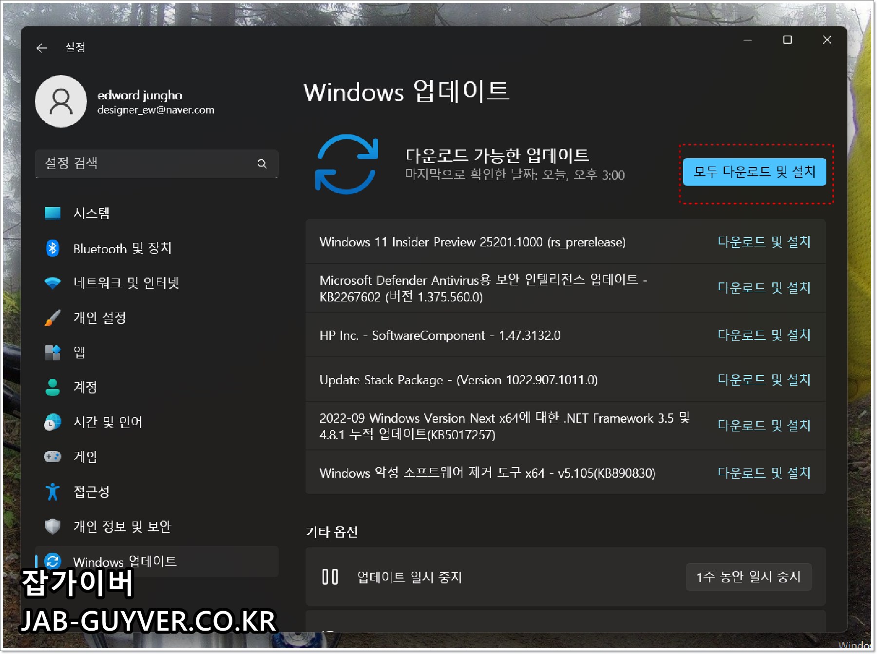 그럼 현재 윈도우11 참가자 프로그램에 대한 Insider Preview 업데이트 설치가 가능합니다.