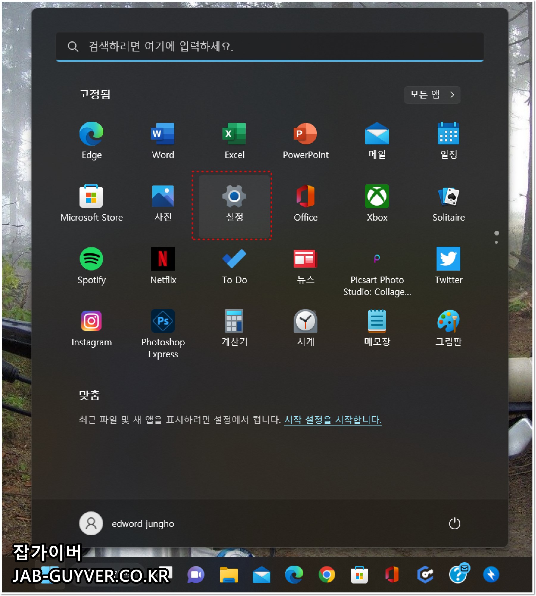 윈도우 참가자 프로그램을 중단하기 위해서는 윈도우 설정으로 들어갑니다.