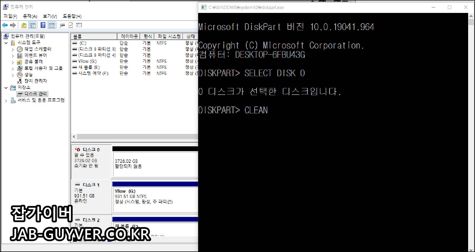 - 새 하드디스크 및 SSD의 경우 파티션 활성화를 해야함