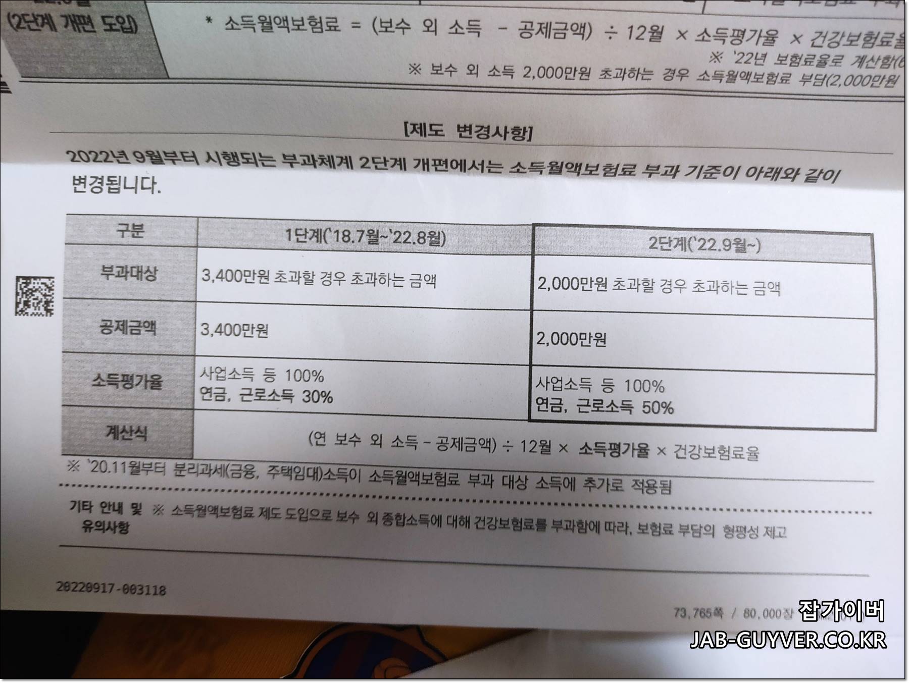 2022년 9월 국민건강보험료 개편 부과체계 2단계