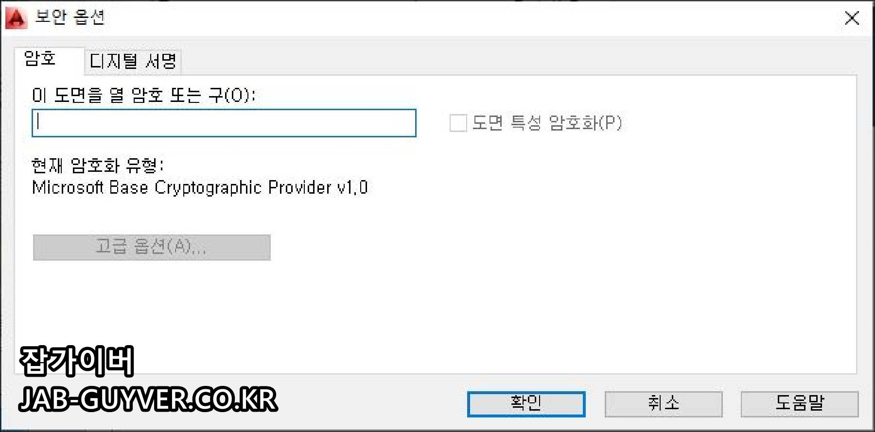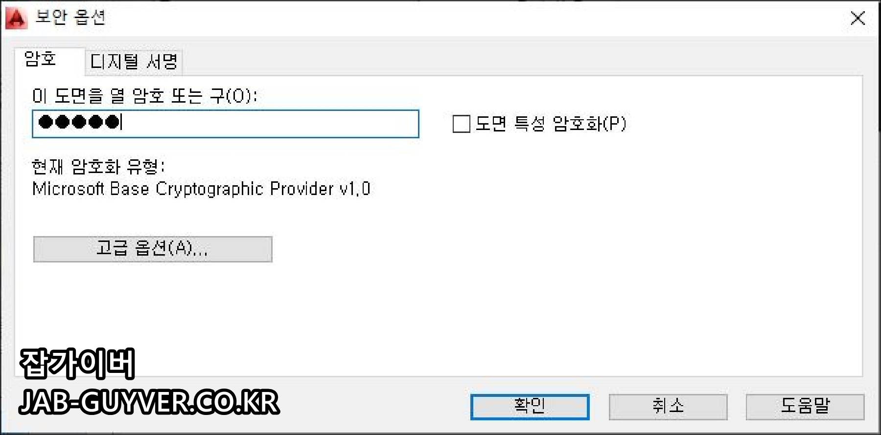 - 보안옵션이 실행되면 오토캐드 암호설정 및 디지털서명이 가능합니다.