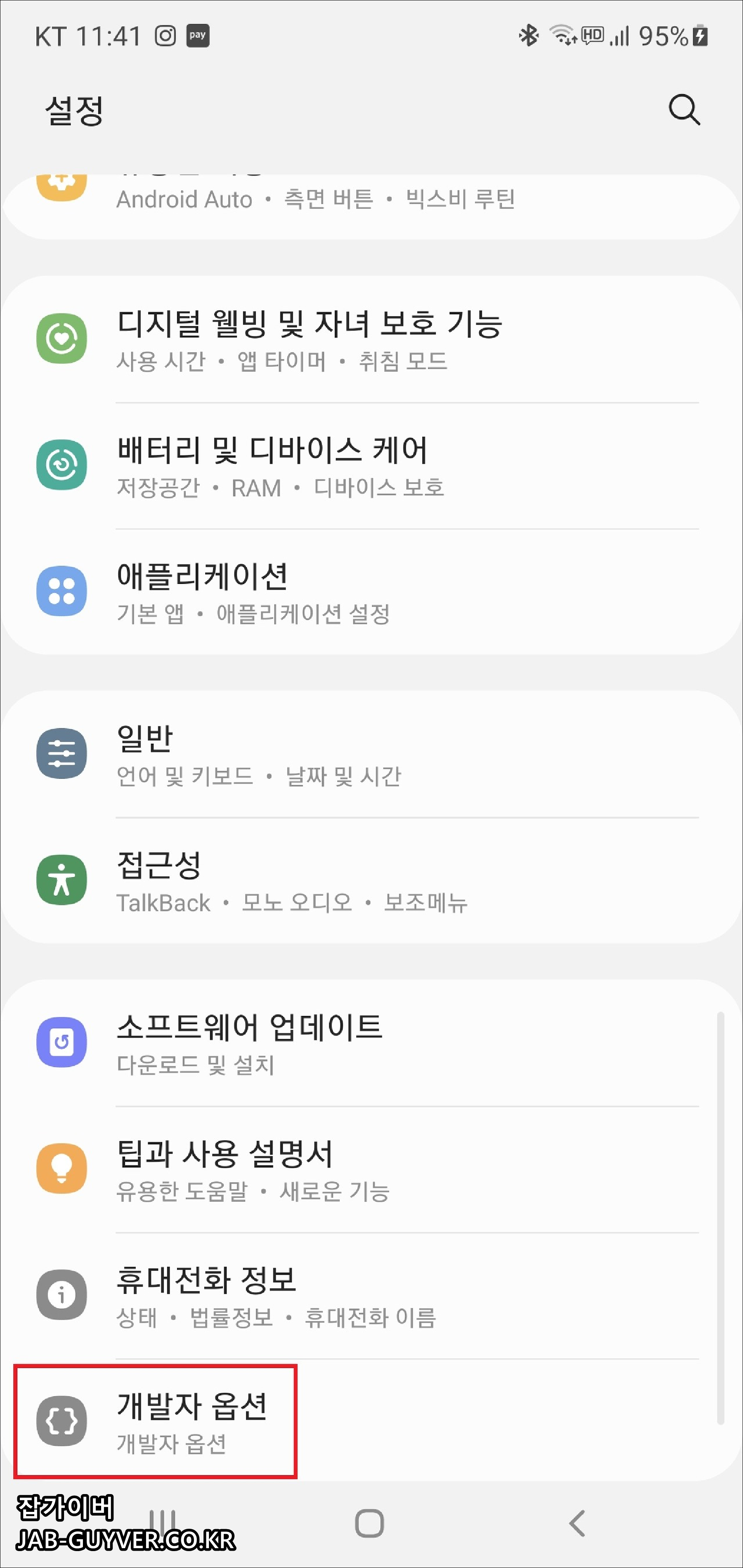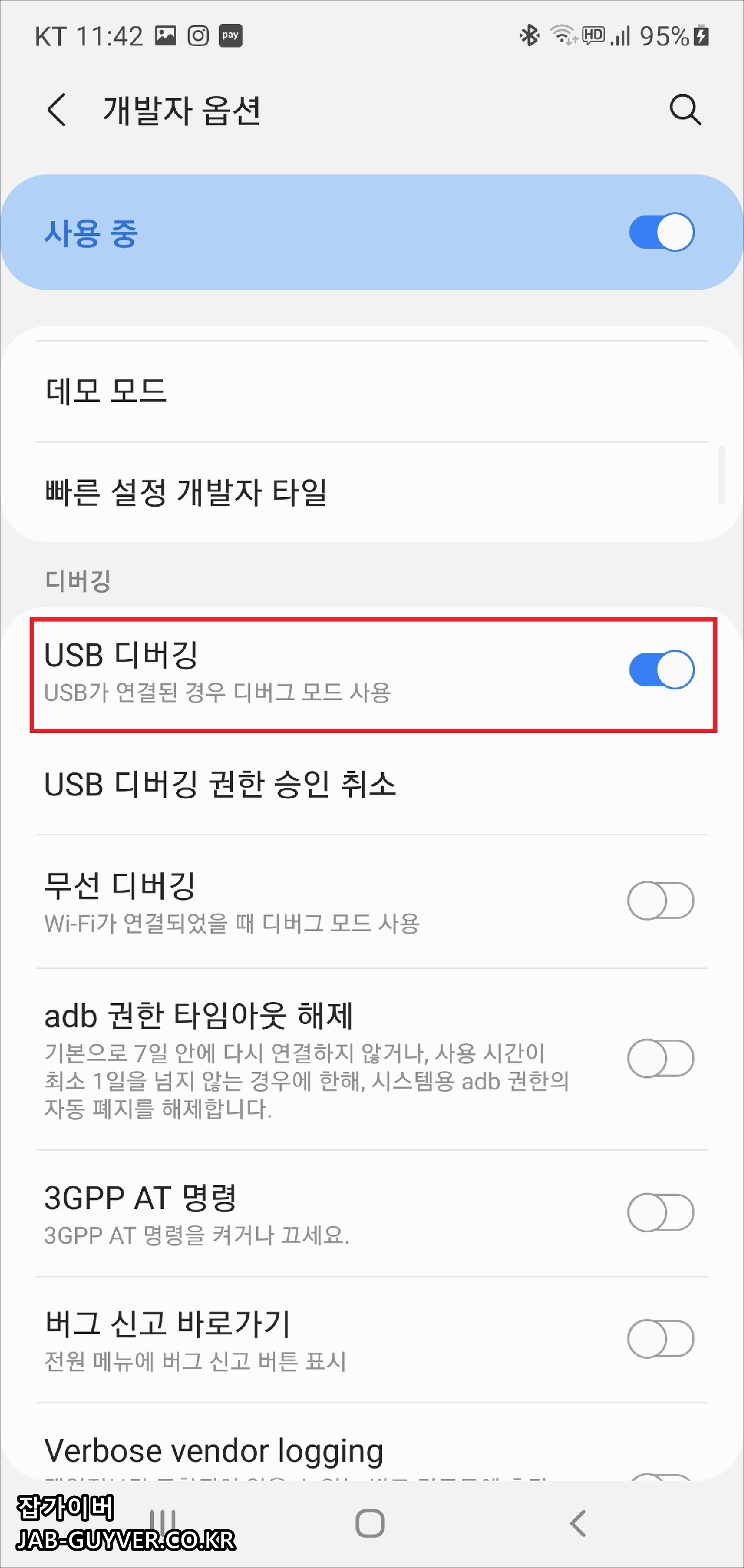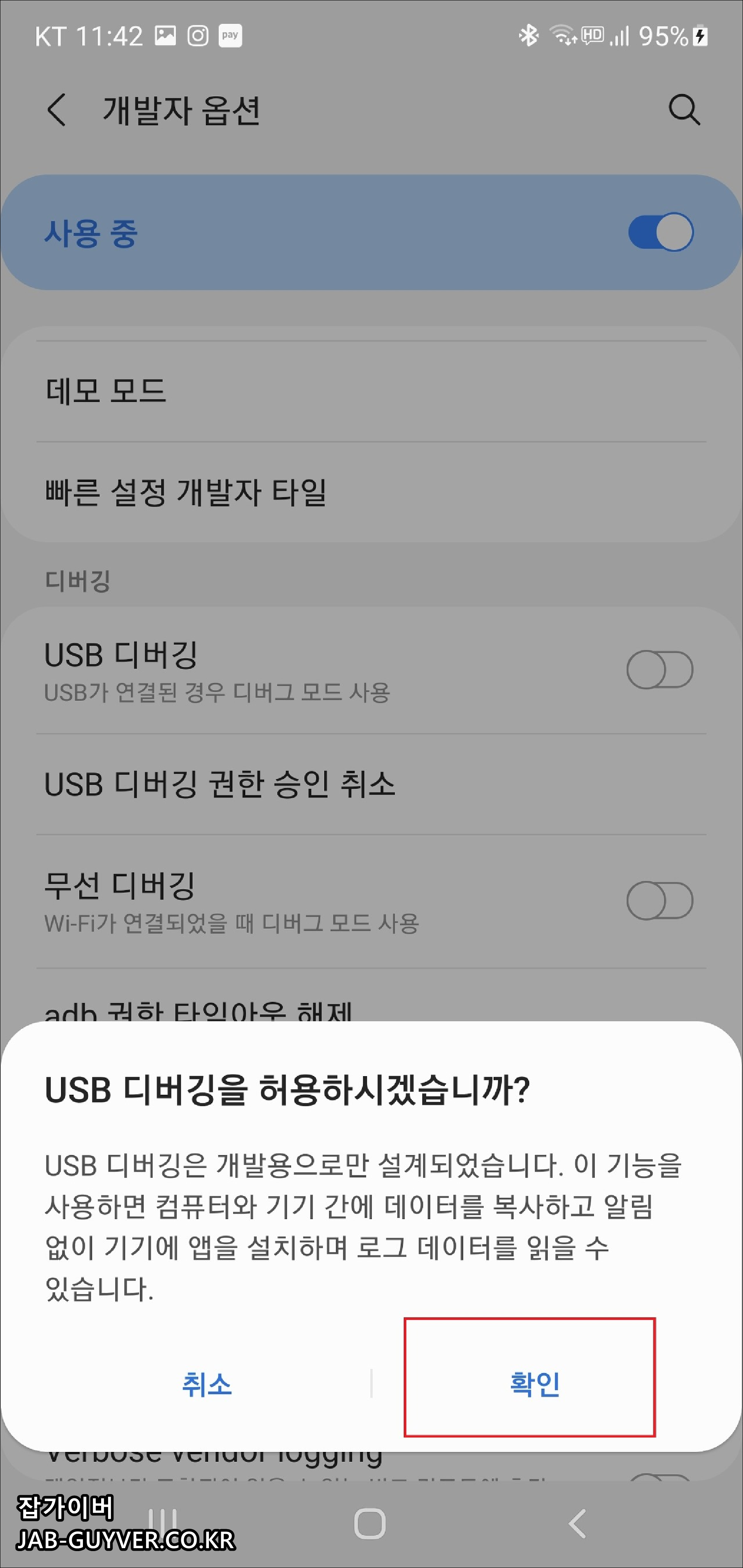 개발자옵션 USB 디버깅 활성화