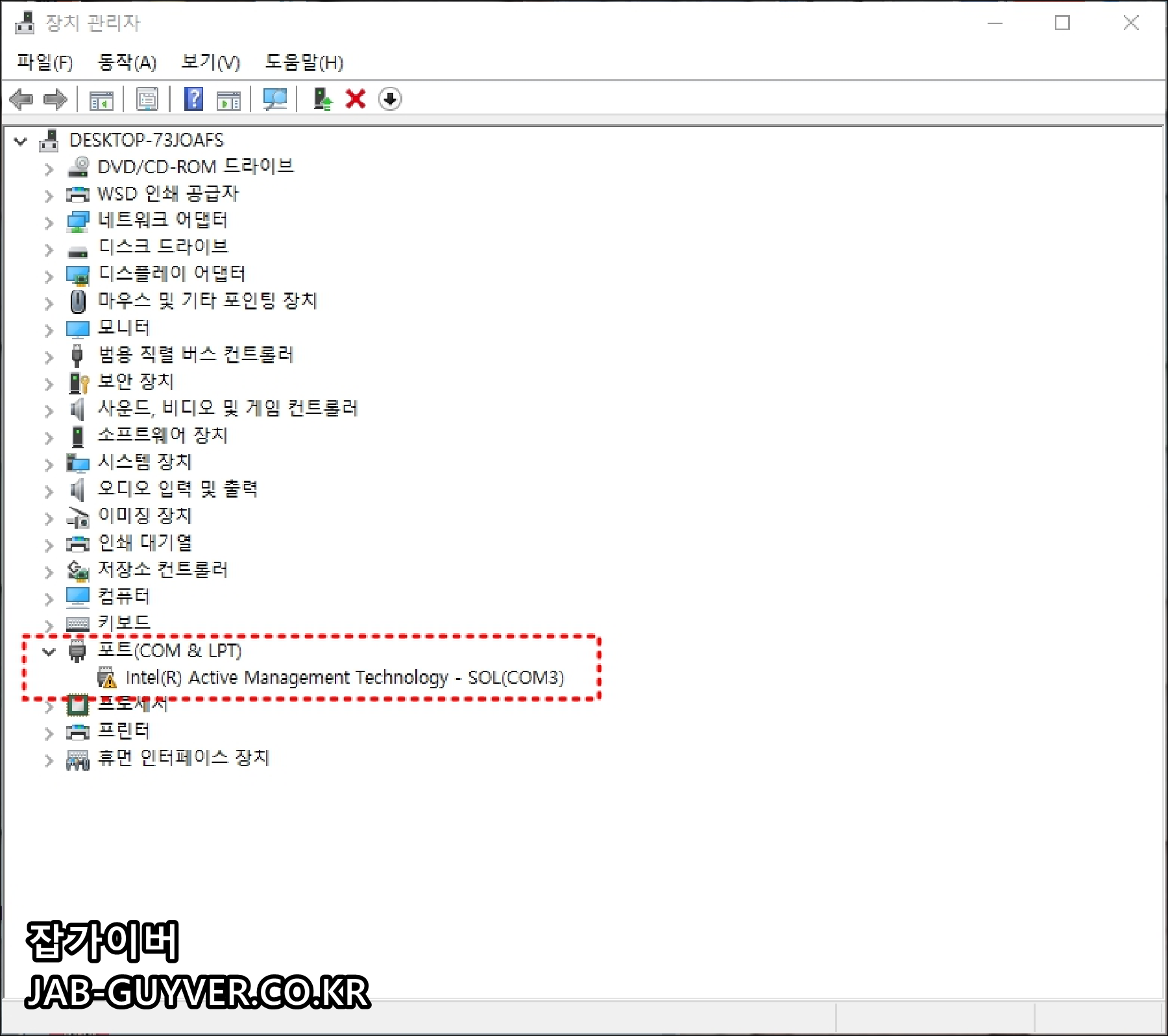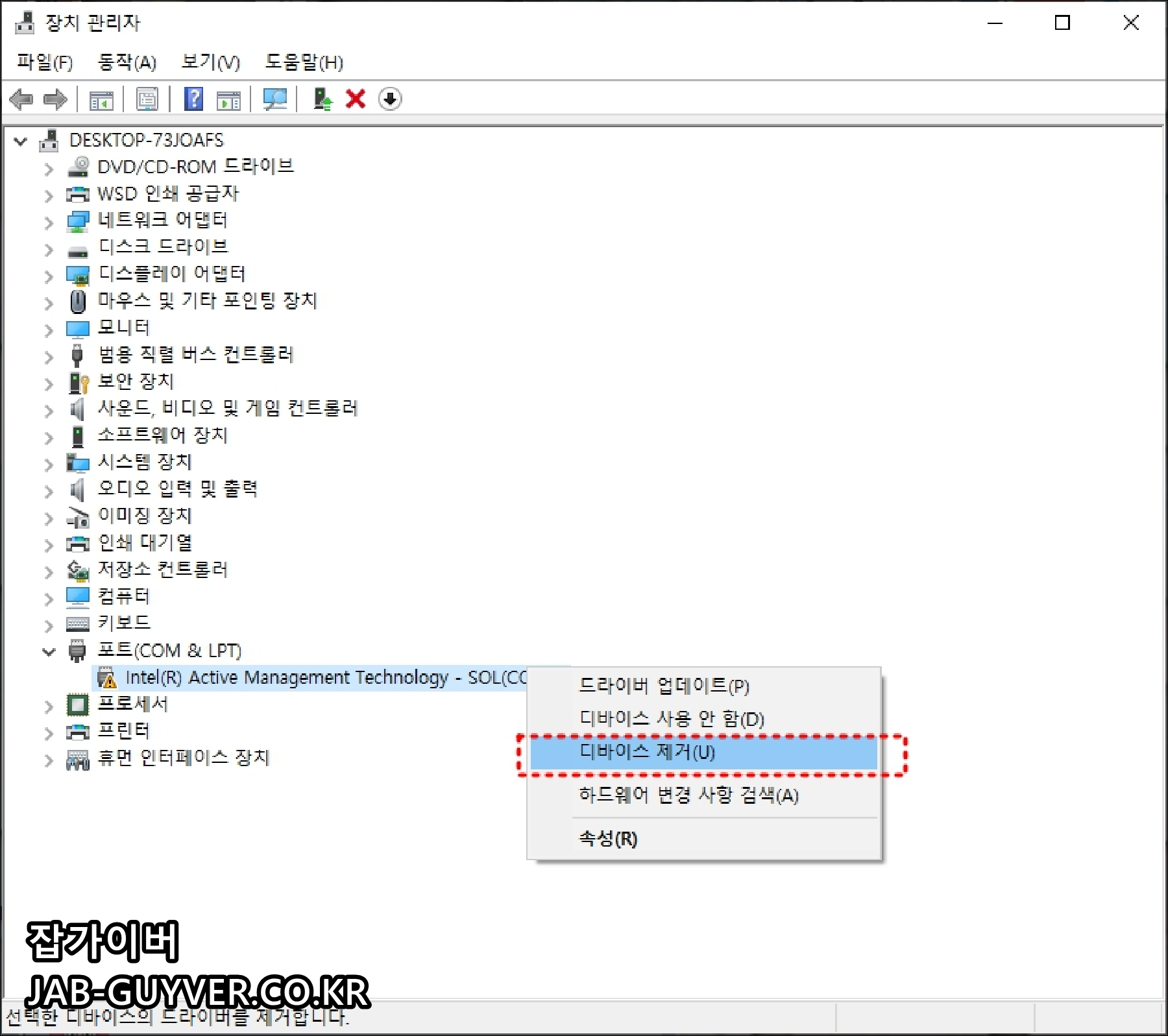 그 외에도 포트 COM & LPT 포트에도 오류가 있는게 있다면 디바이스 제거 후 재설치합니다.