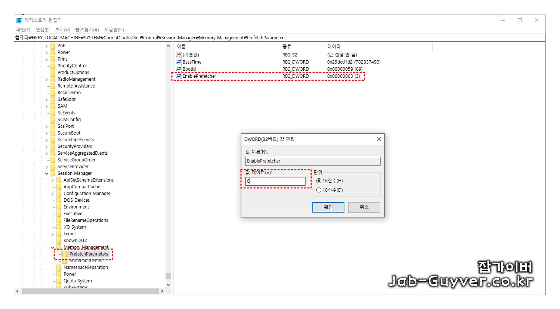 다음 "EnablePrefetcher" 값을 0으로 변경합니다.