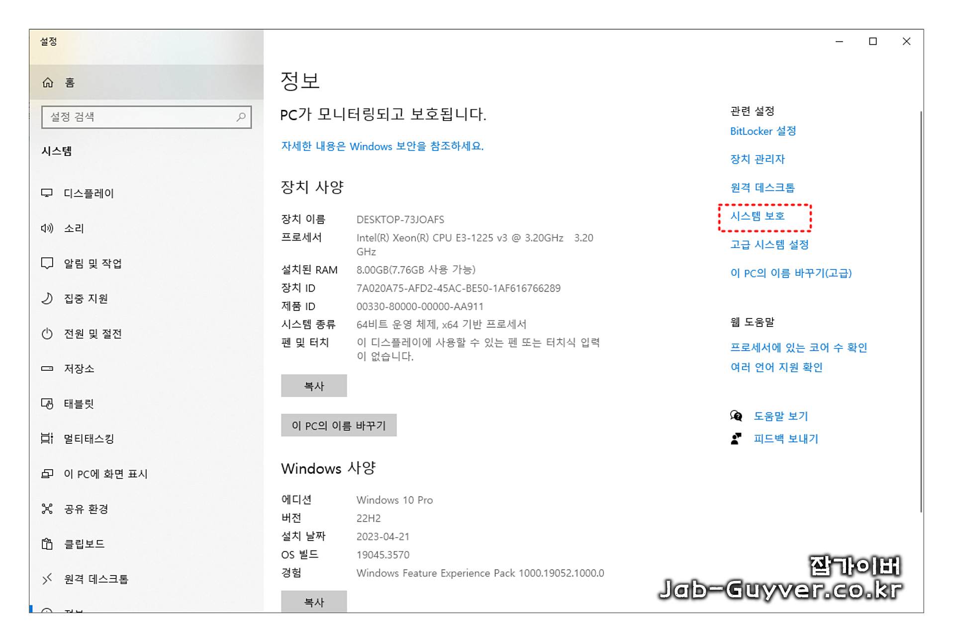 시스템 보호 기능 비활성화