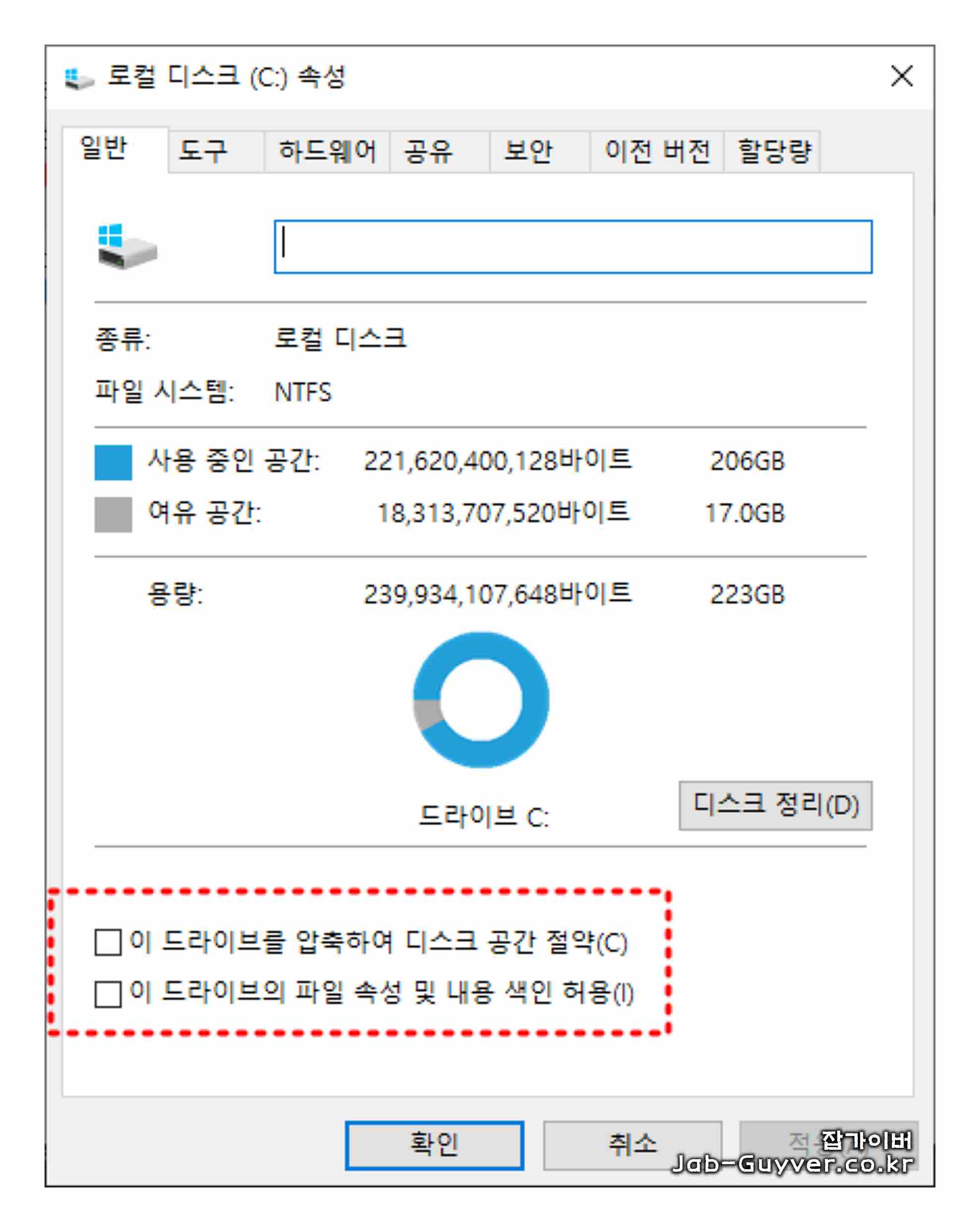 - 이 드라이브를 압축하여 디스크 공간 절약