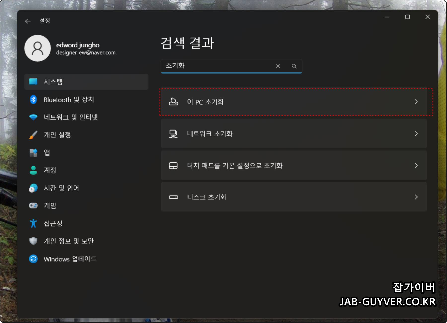 이 PC 초기화를 하더라도 현재 설치된 버전이 윈도우11이기 때문에 윈도우10으로 되돌아가기가 안됩니다.