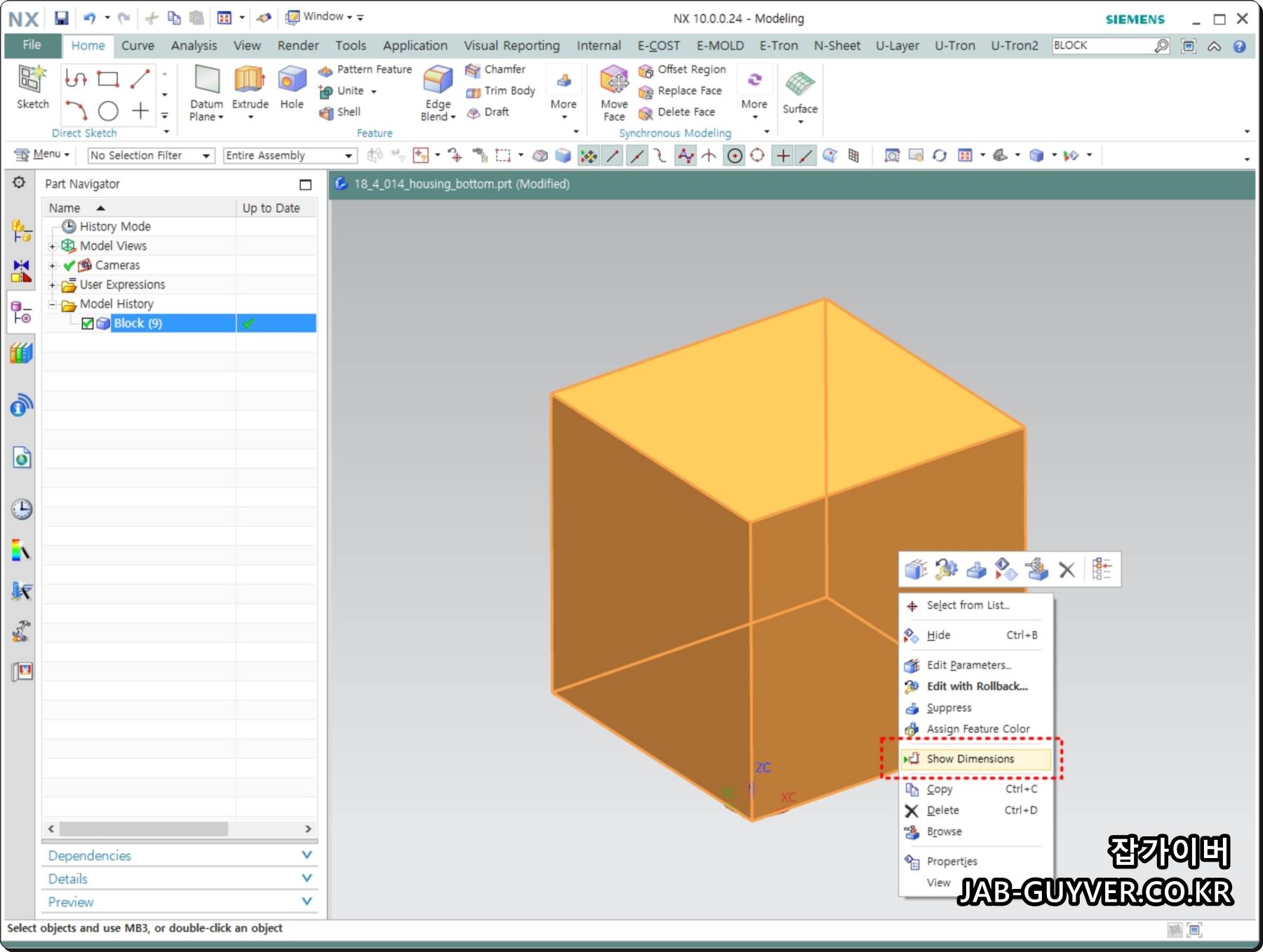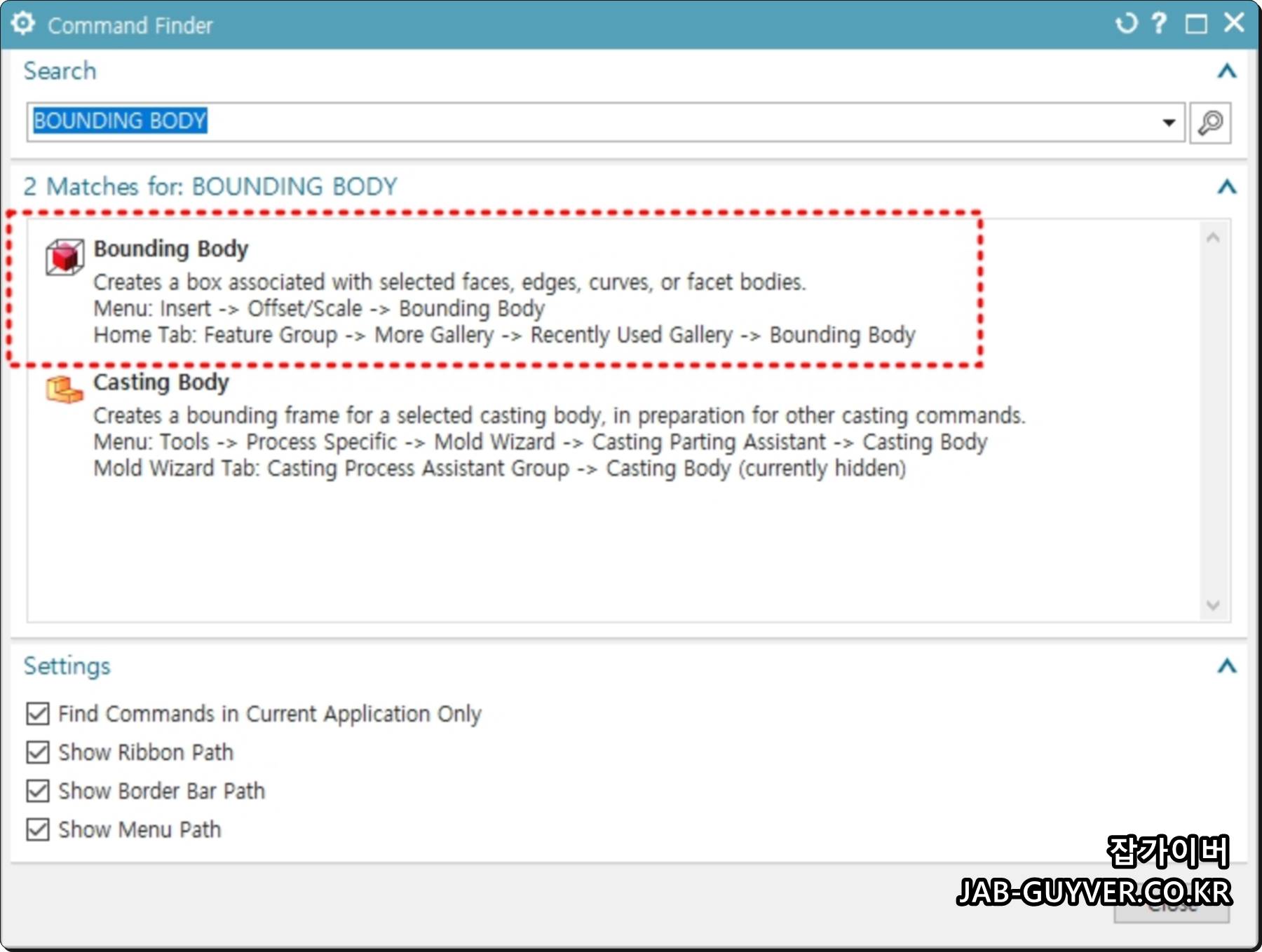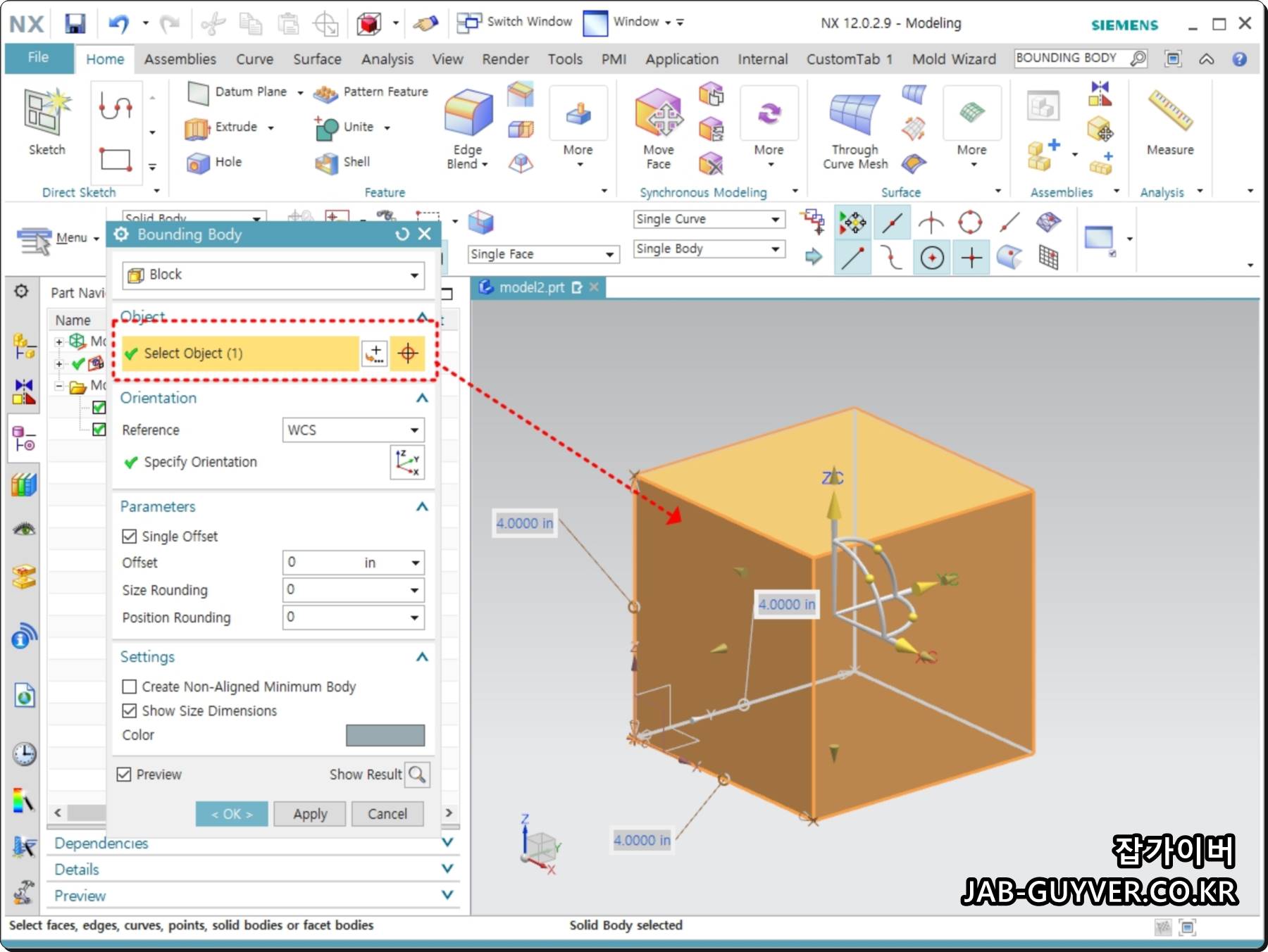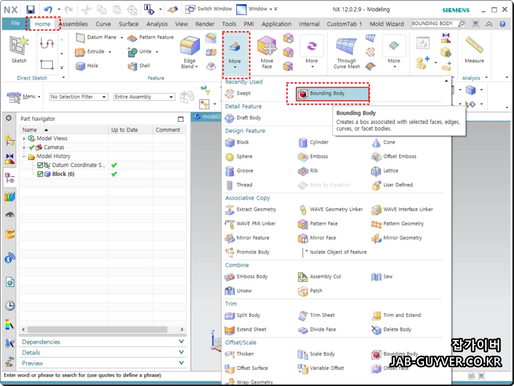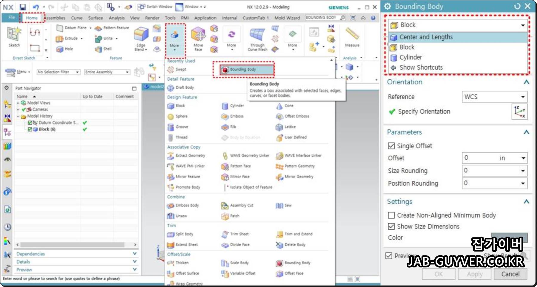 NX Bounding Body 기능은 NX11 이후에 생긴 기능으로 NX10 버전 이하 버전에서는 사용이 불가능합니다.