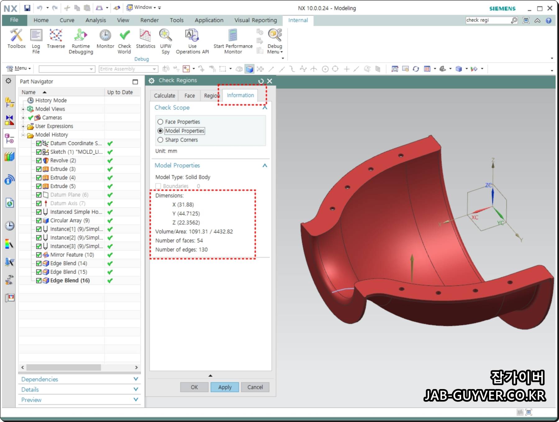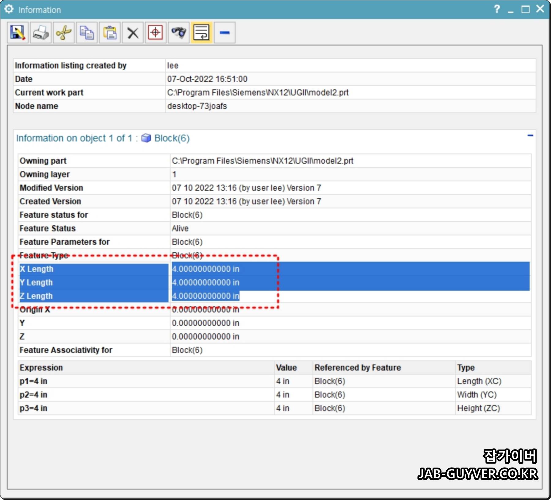 UG NX - X Y Z Size 크기 넓이 높이 최대 사이즈 측정방법