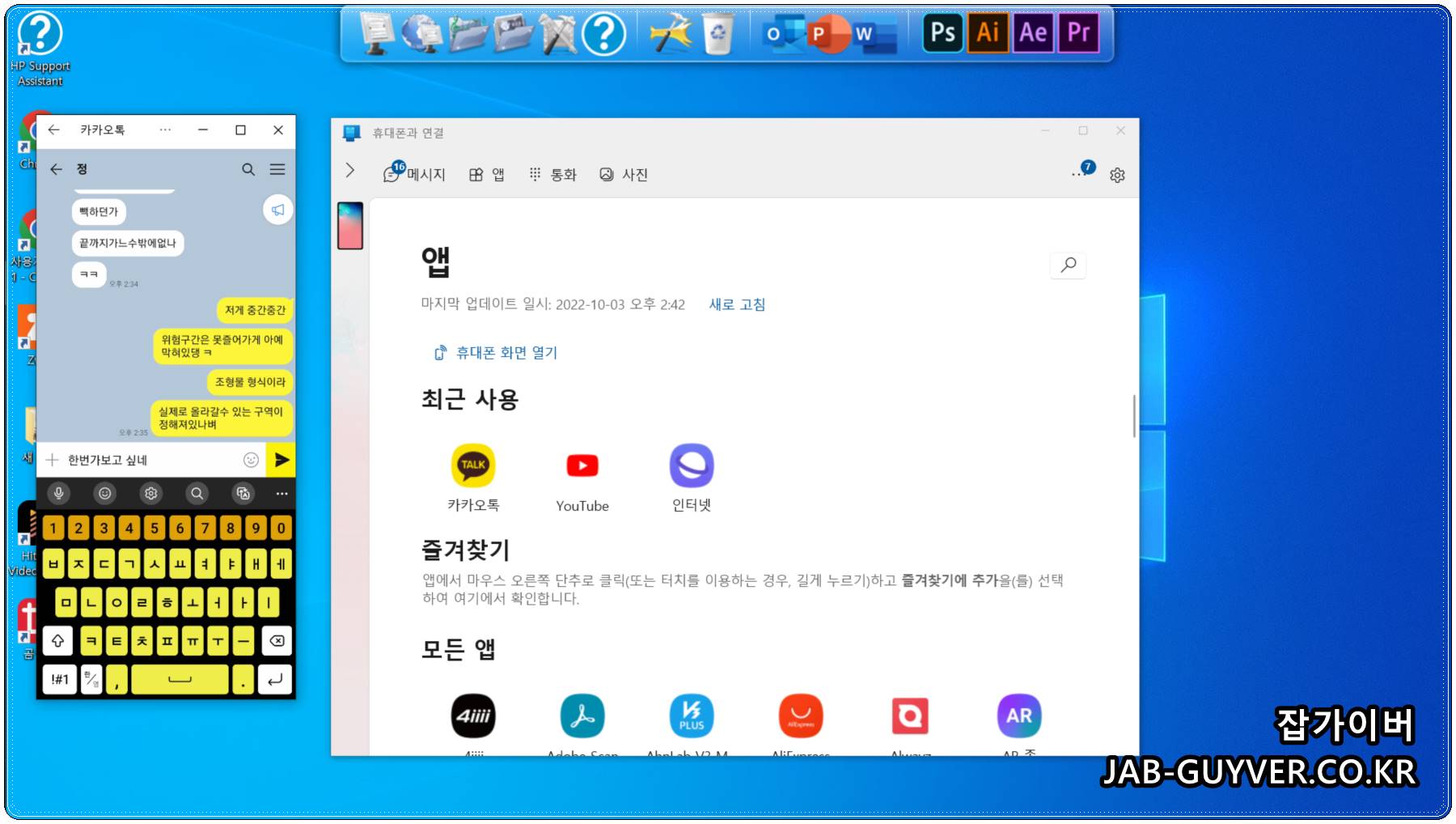갤럭시 핸드폰 노트북 무선연결 미러링 – 사진·동영상 전송과 카톡 실행까지 한 번에