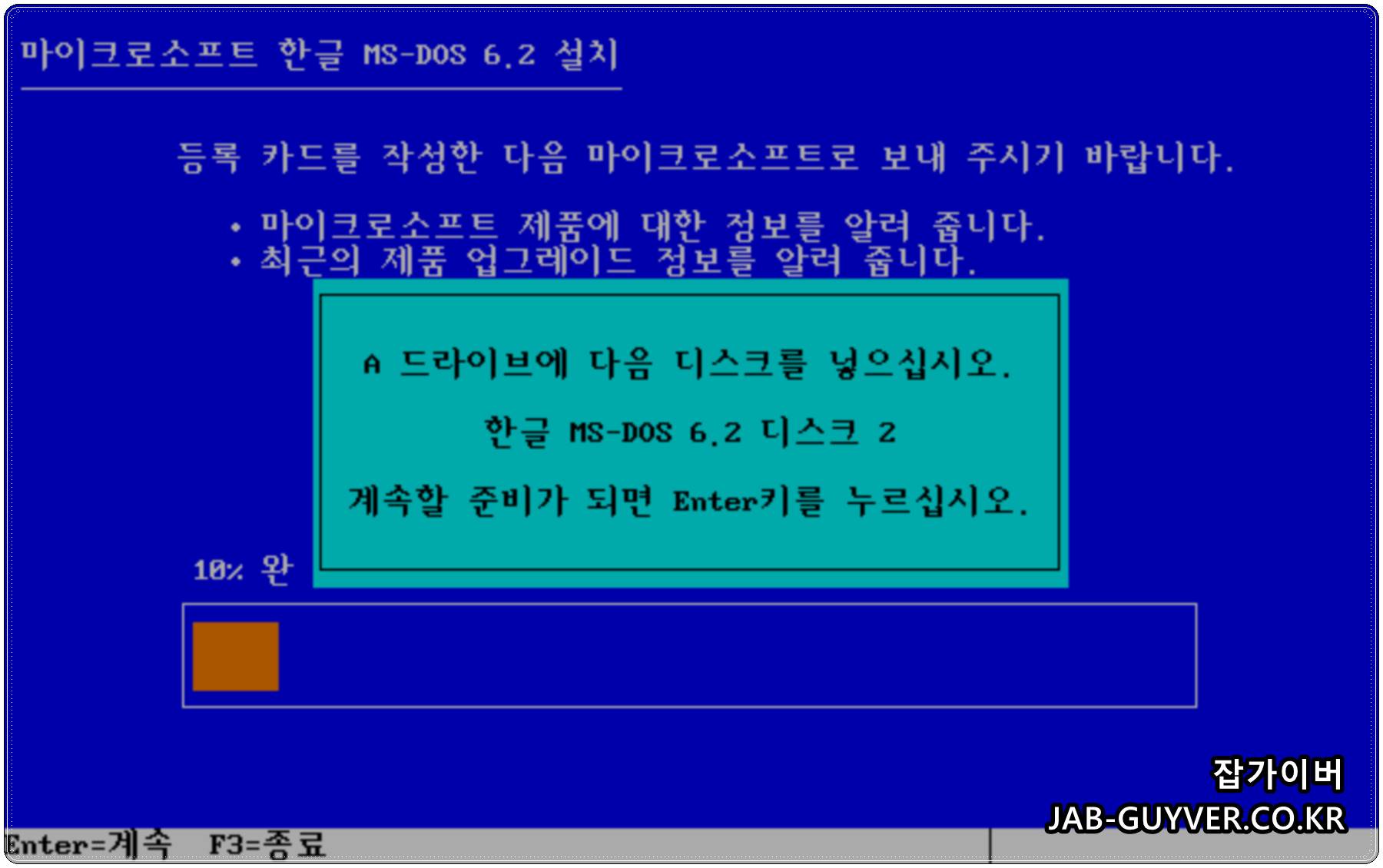 모든 설치가 완료되었다면 ENTER키를 눌러 컴퓨터를 재부팅하면 한글 MS-DOS 6.2 부팅이 됩니다.