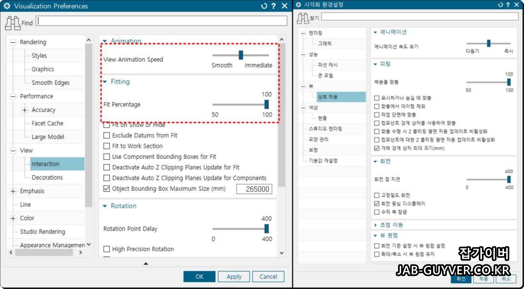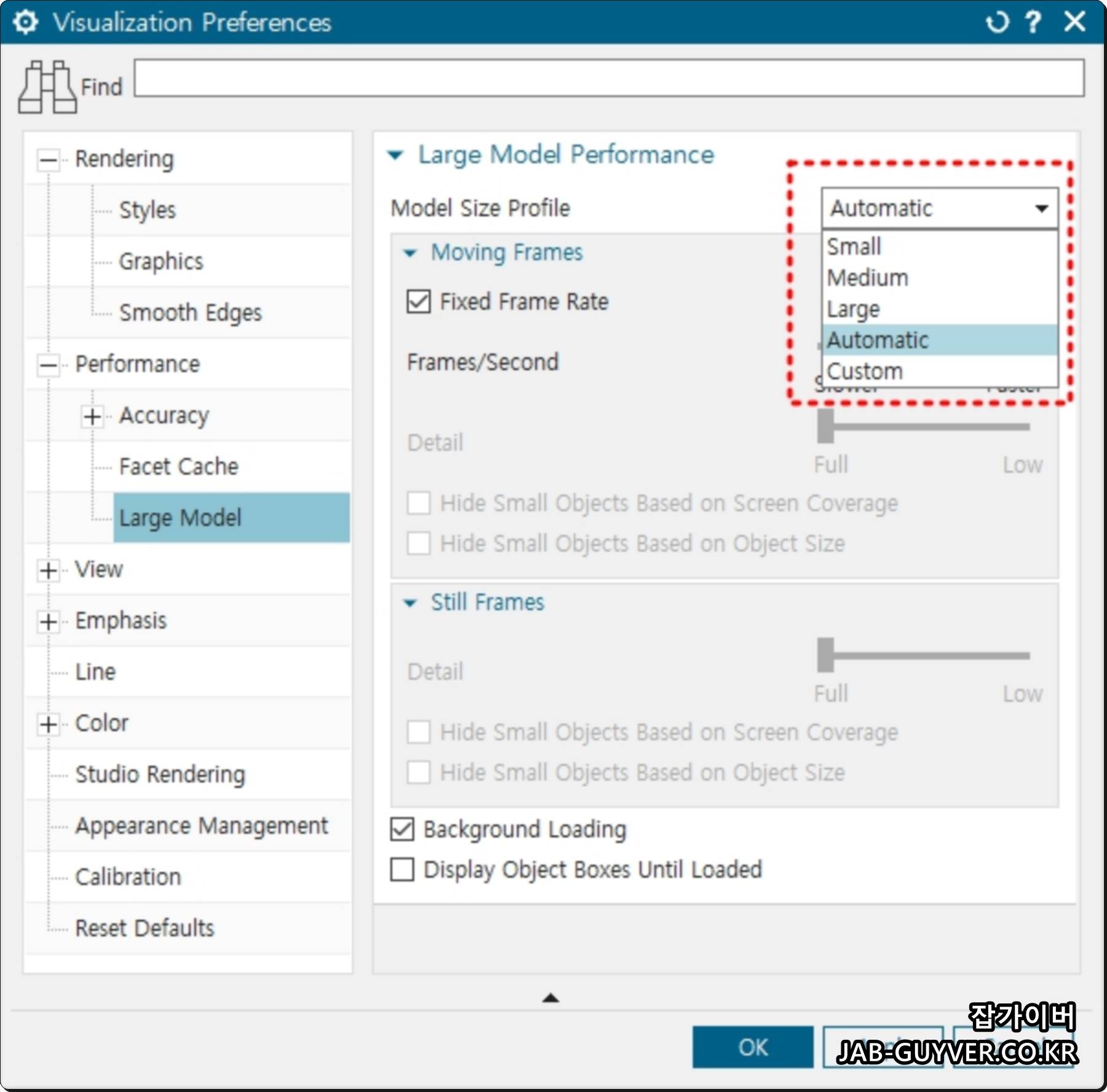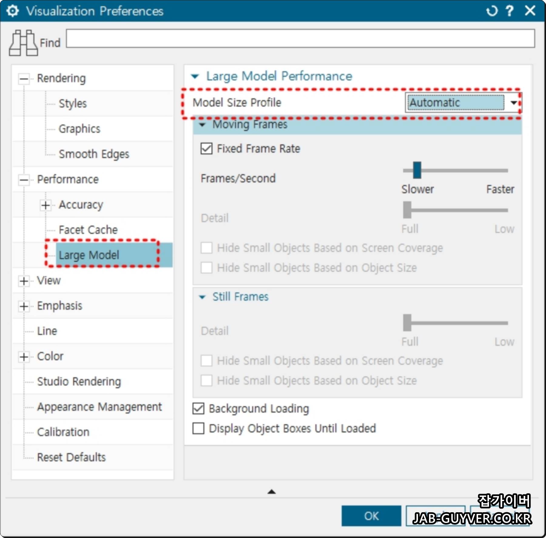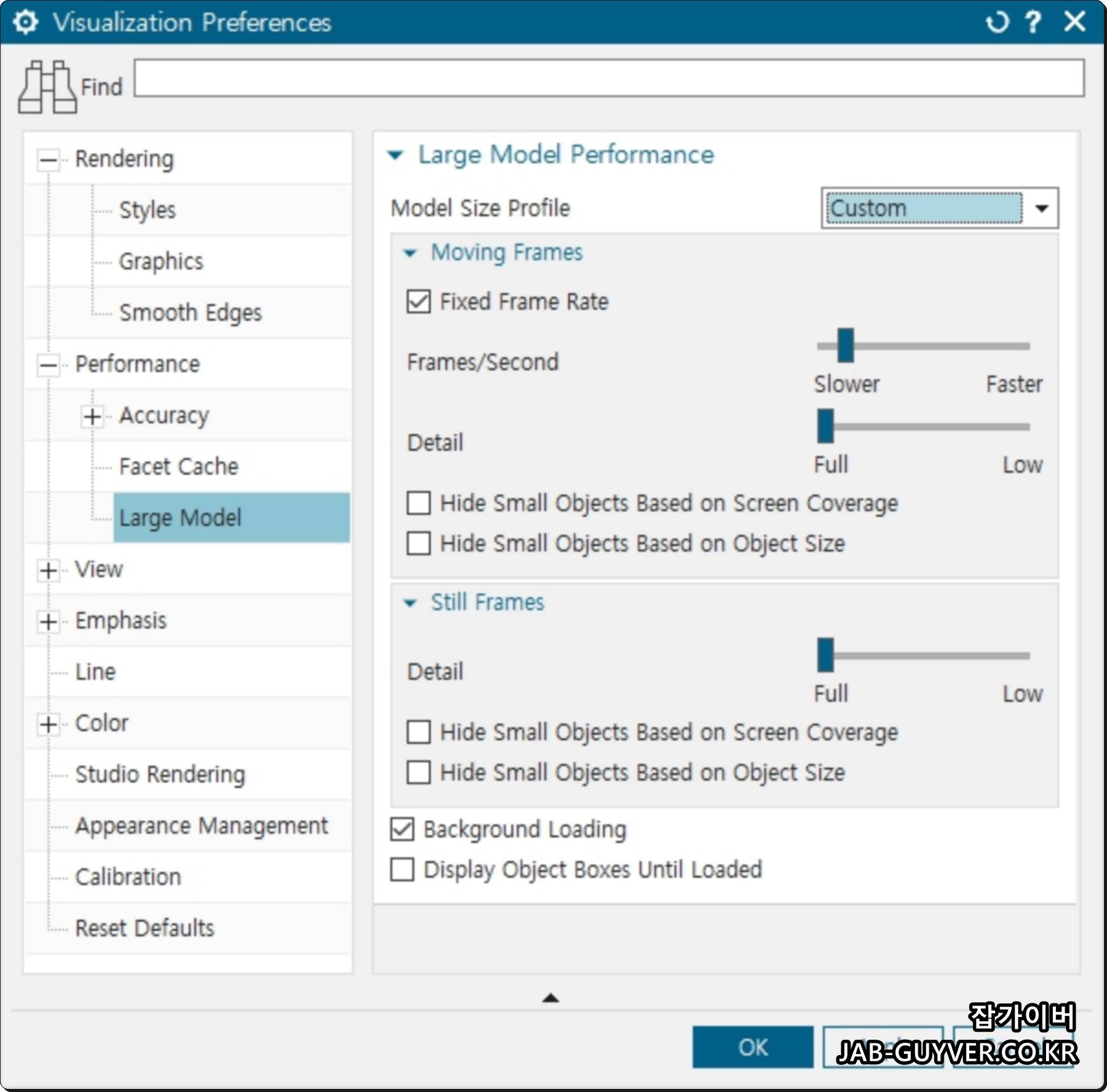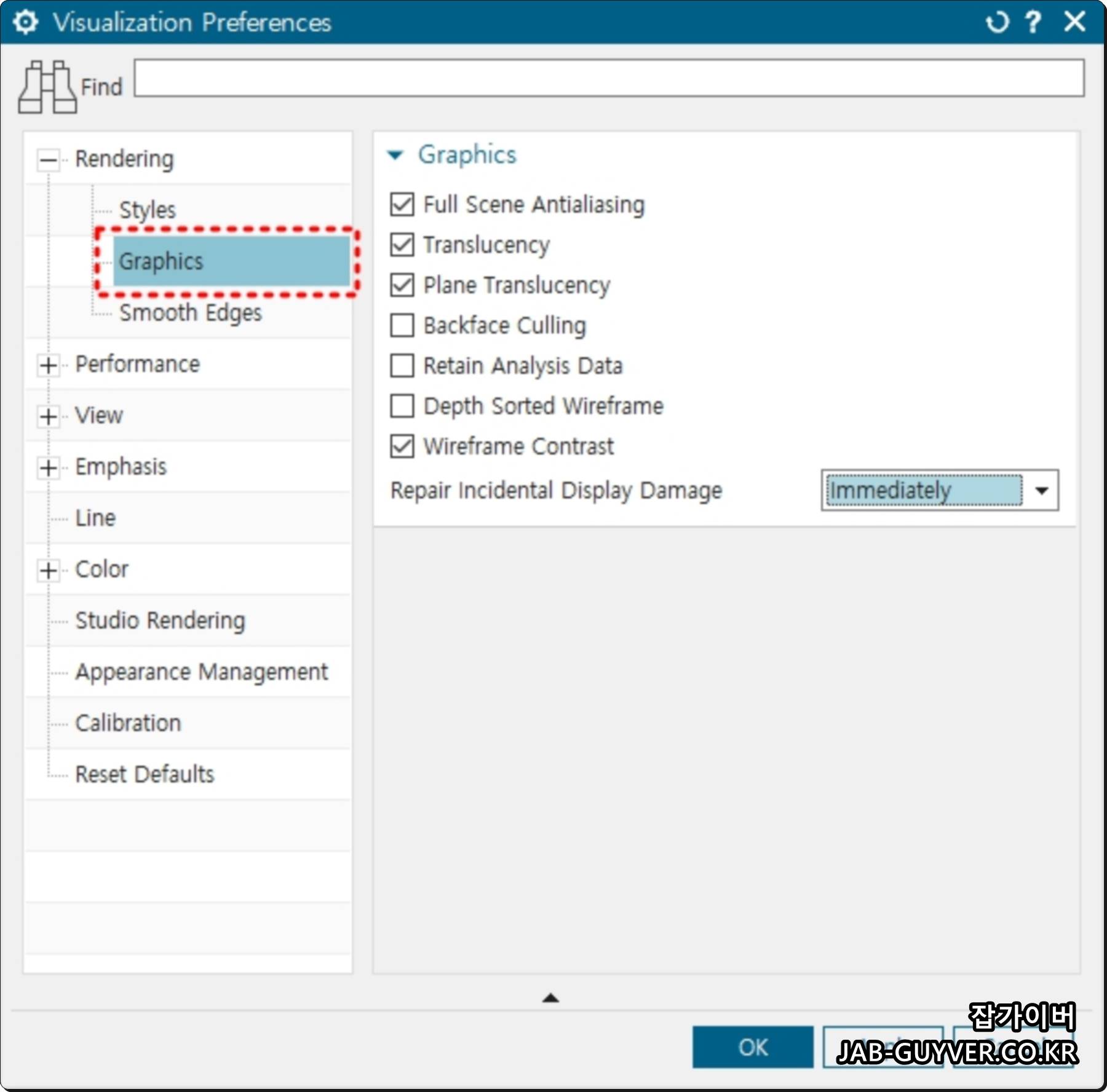 UG NX 그래픽 깨짐 - 직선 및 블랜드 버벅거림 최적화