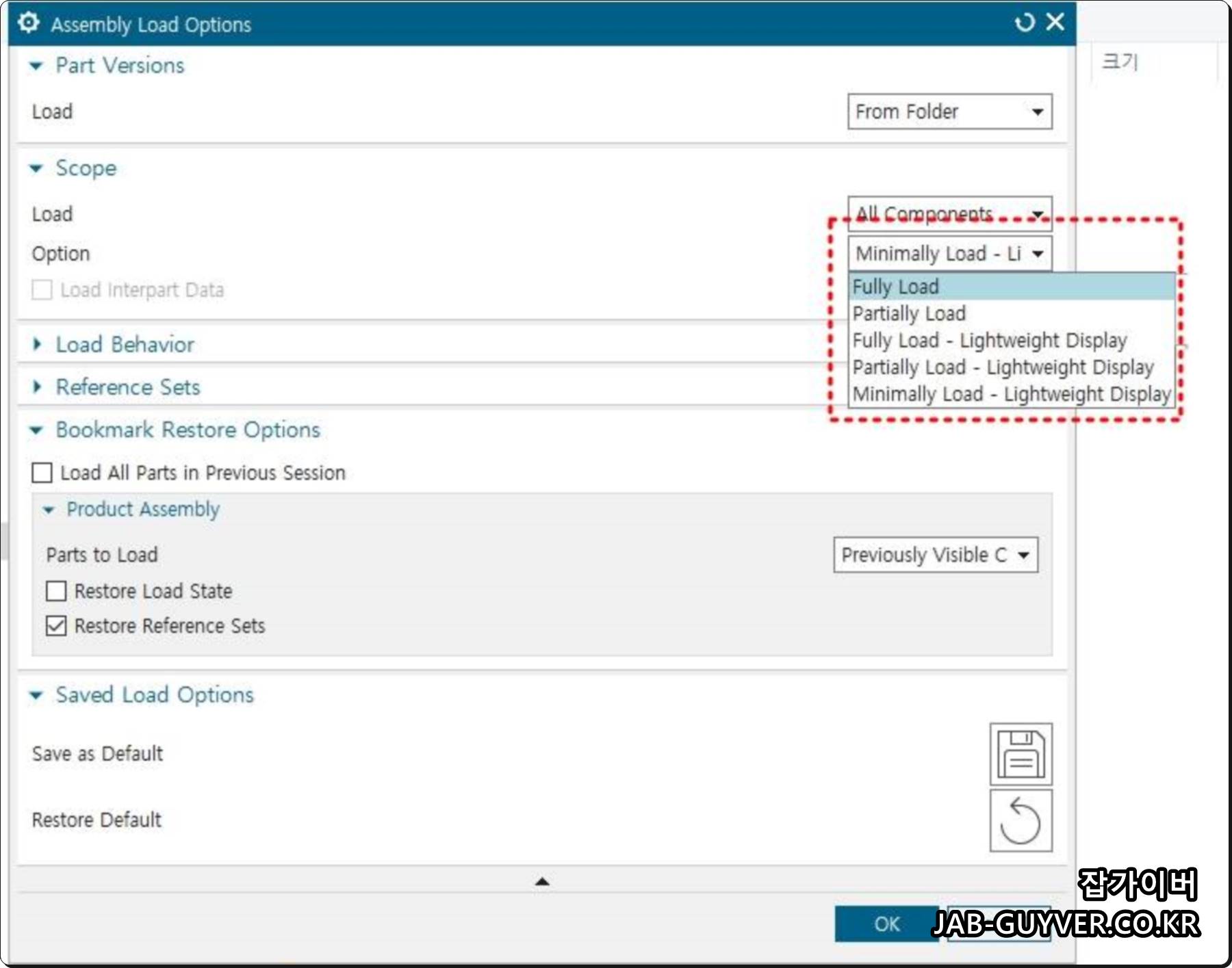 기본적으로 부품갯수가 많은 Assy 데이터는 Fully Load 보다는 부분로드나 최소로드로 가벼운 데이터와 중요한 데이터 (외관 데이터)위주로 데이터를 불러옵니다.
