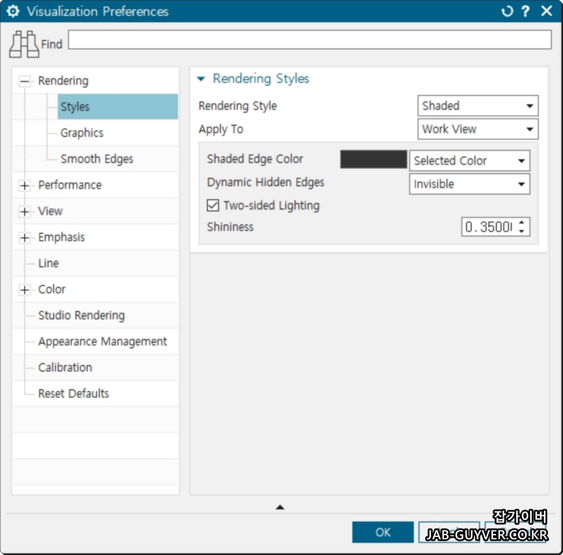 여기서 UG NX의 그래픽설정이 가능합니다.