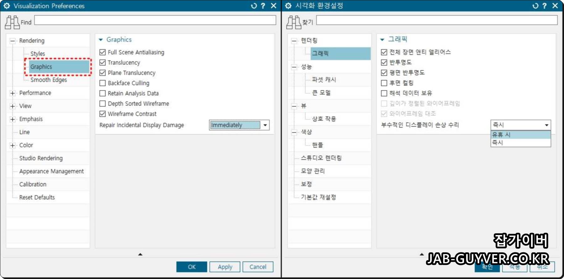 UG NX 그래픽 깨짐 - 직선 및 블랜드 버벅거림 최적화