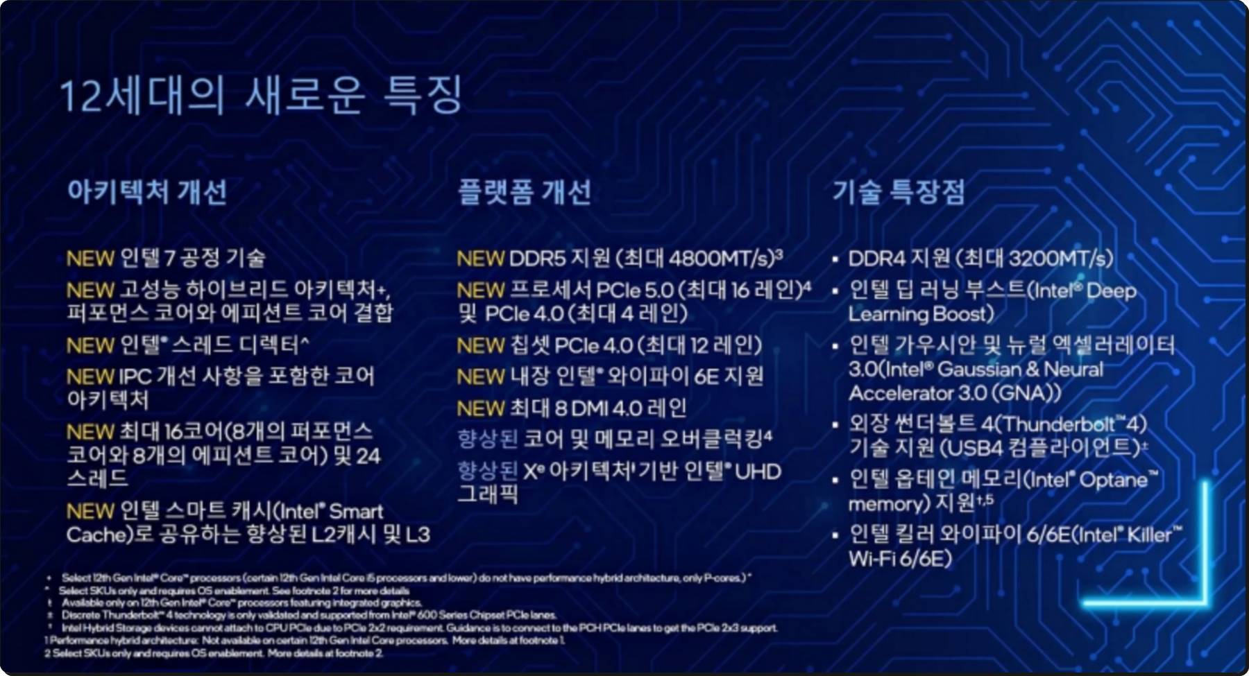 이번에 새롭게 출시한 인텔의 새로운 프로세서 CPU인 인텔12세대 이름은 엘더레이크 "Aider Lake"라는 이름으로 출시되었으며 기존에 출시한 인텔11세대와 비교하여 저전력 및 소형 칩셋을 장착했지만 더욱 고성능 코어를 조합한 하이브리드 아키텍처로 출시했으며 이에대한 가격 및 성능에 대한 라인업 별로 정리해봅니다.