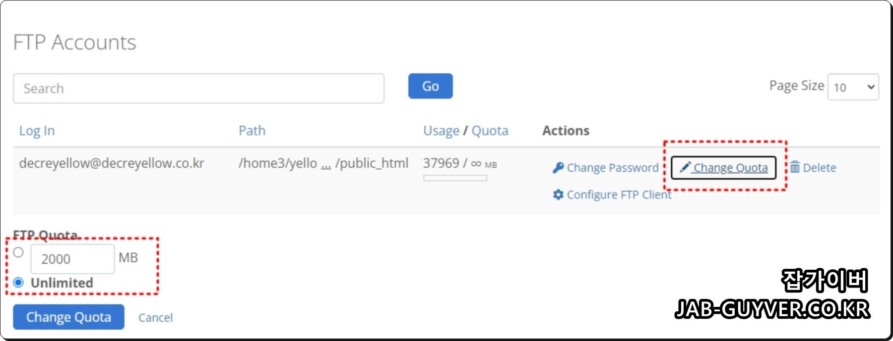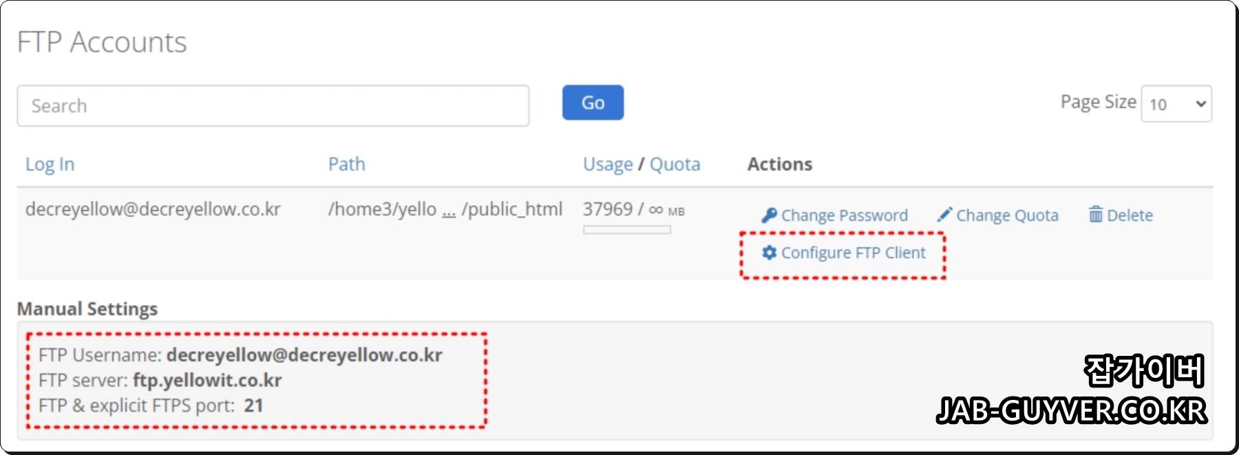 해당정보가 기억나지 않는다면 하단 FTP Account를 통해 로그인설정을 확인할 수 있습니다.