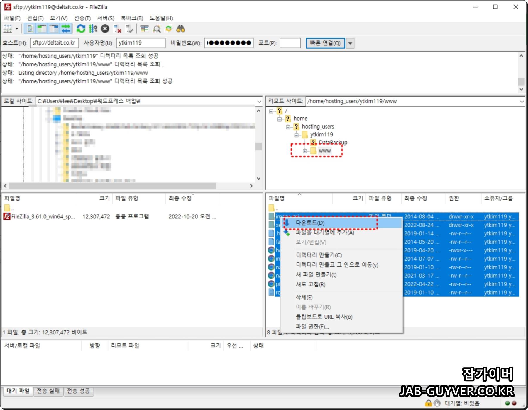 이후 WWW 폴더를 다운로드해서 백업합니다.
