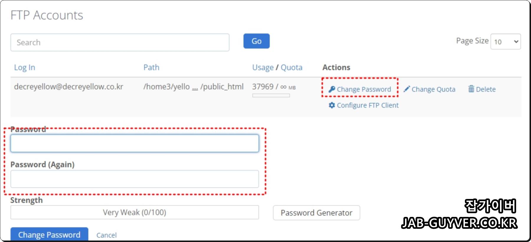 해당정보가 기억나지 않는다면 하단 FTP Account를 통해 로그인설정을 확인할 수 있습니다.
