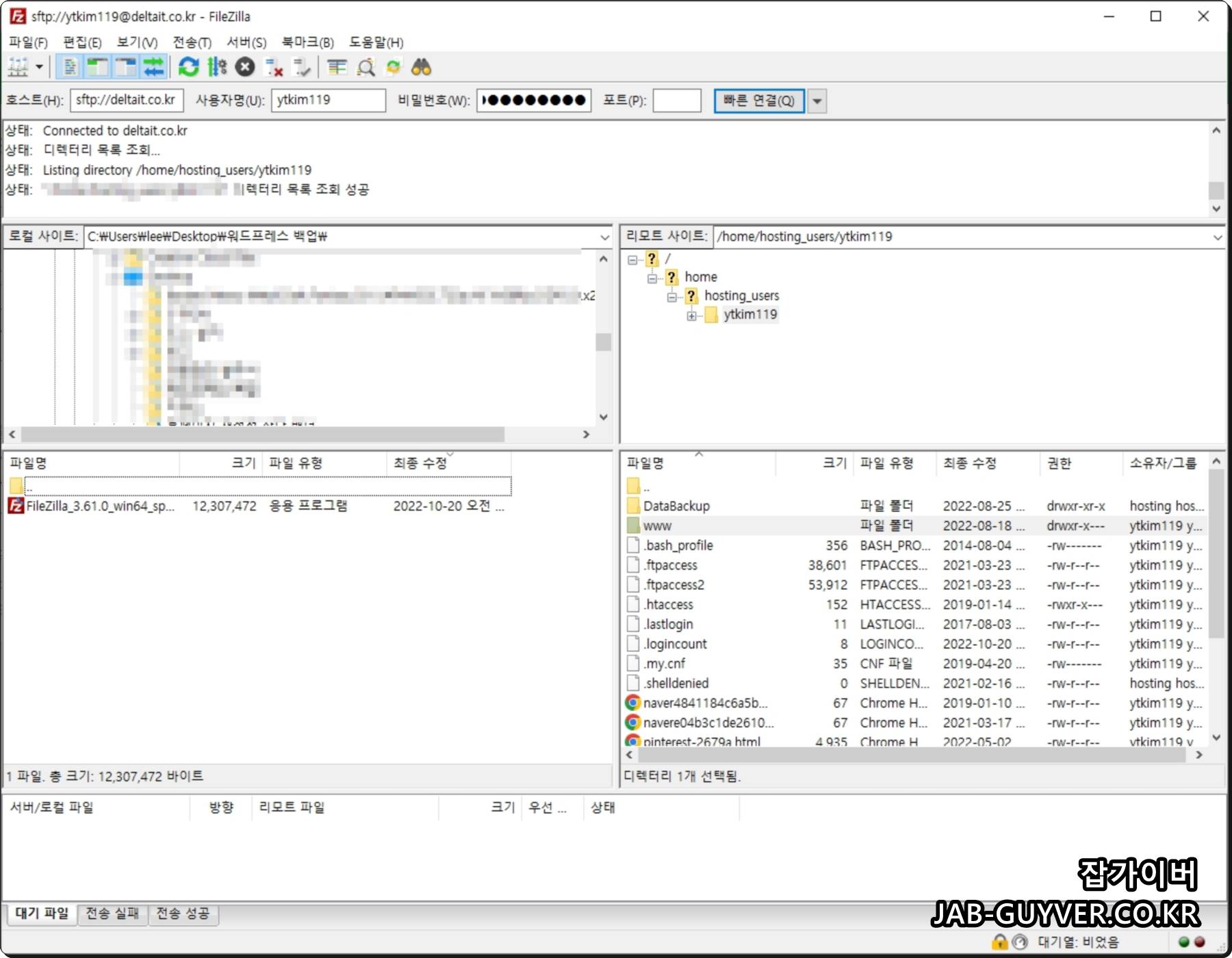 파일질라를 통한 워드프레스 FTP 접속이 어렵다면 아래내용을 참고하세요